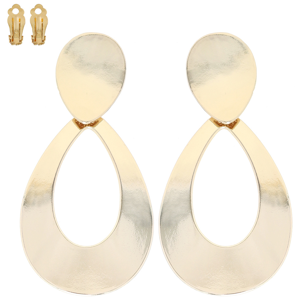 2-TIER BRUSHED METAL TEARDROP LONG DROP CLIP-ON EARRINGS