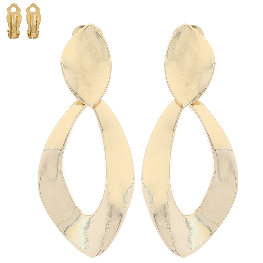 2-TIER HAMMERED METAL IRREGULAR TEARDROP LONG DROP CLIP-ON EARRINGS