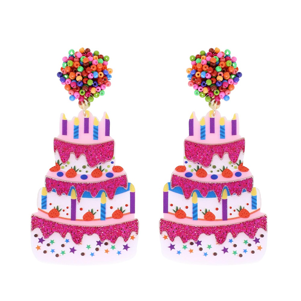 Acetate Glitter Birthday Cake Pom Pom Beaded Long Drop Party Earrings