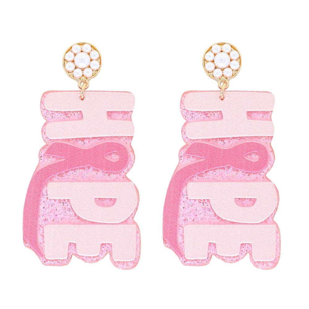 2-tier Pearl Post "hope" Breast Cancer Awareness Pink Ribbon Acetate Glitter Dangle And Drop Earrings