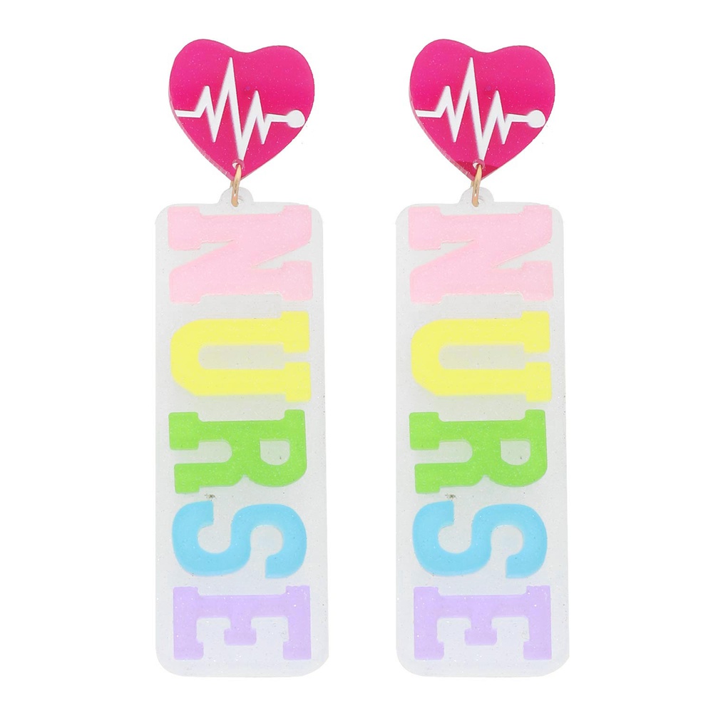 2-TIER MULTICOLOR HEARTBEAT "NURSE" ACETATE LONG DROP EARRINGS