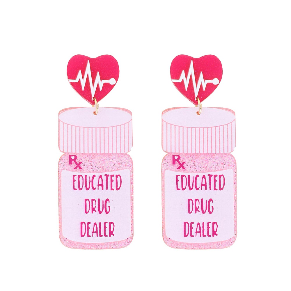2-tier "educated Drug Dealer" Nurse Appreciation Glitter Acetate Dangle And Drop Pill Bottle Earrings