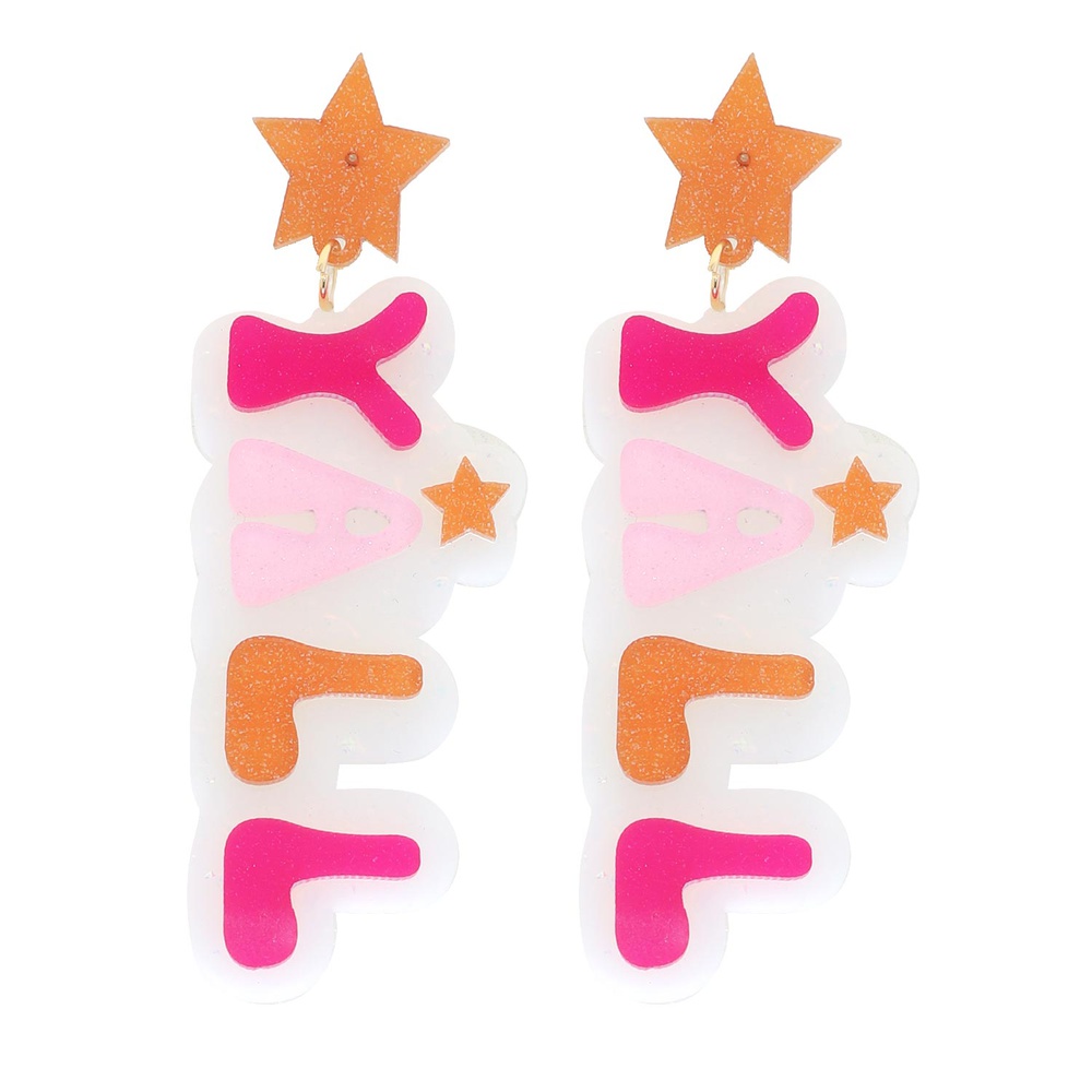 2-TIER STAR POST "YALL" ACETATE GLITTER LONG DROP EARRINGS