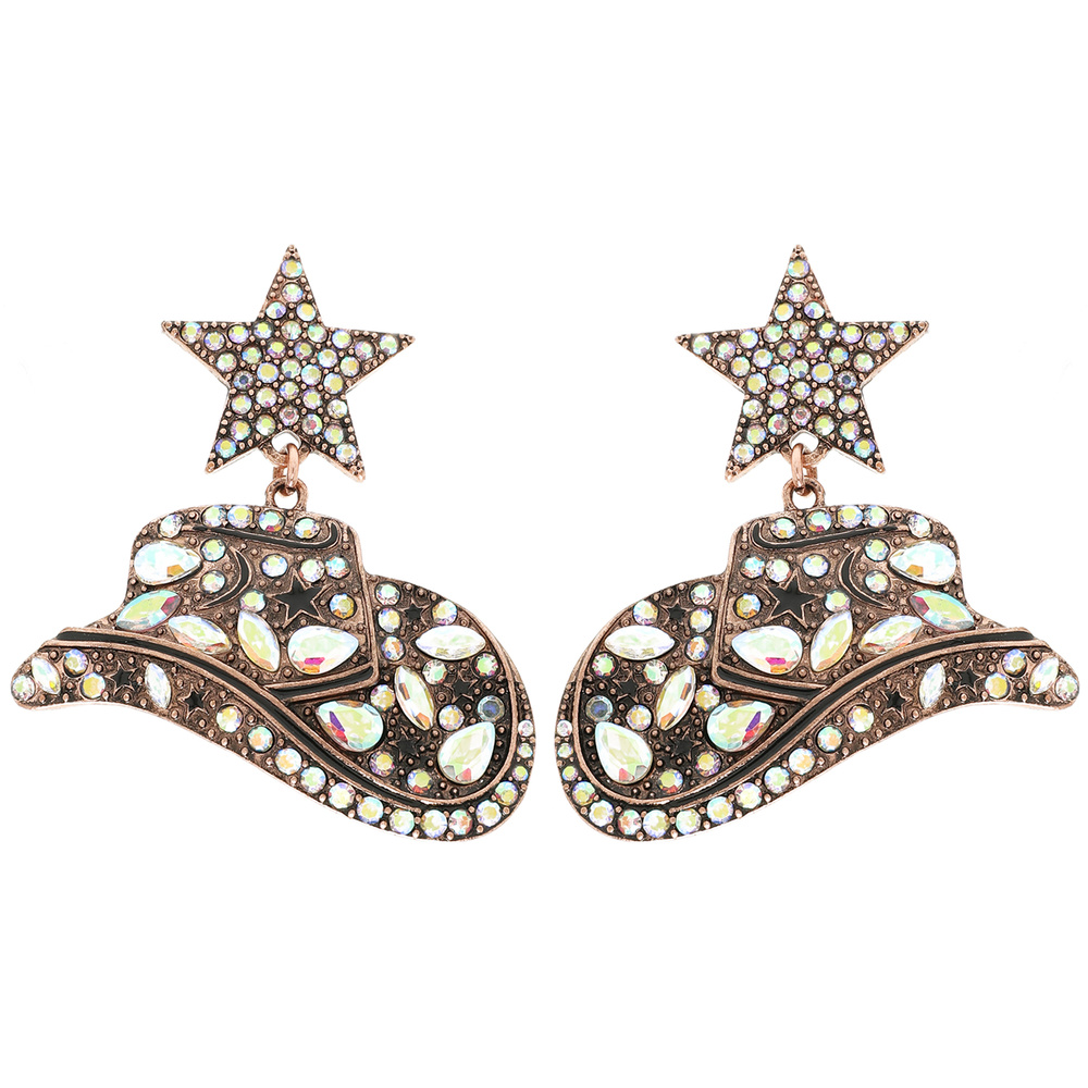 Western Crystal Rhinestone Cowboy Hat Earrings