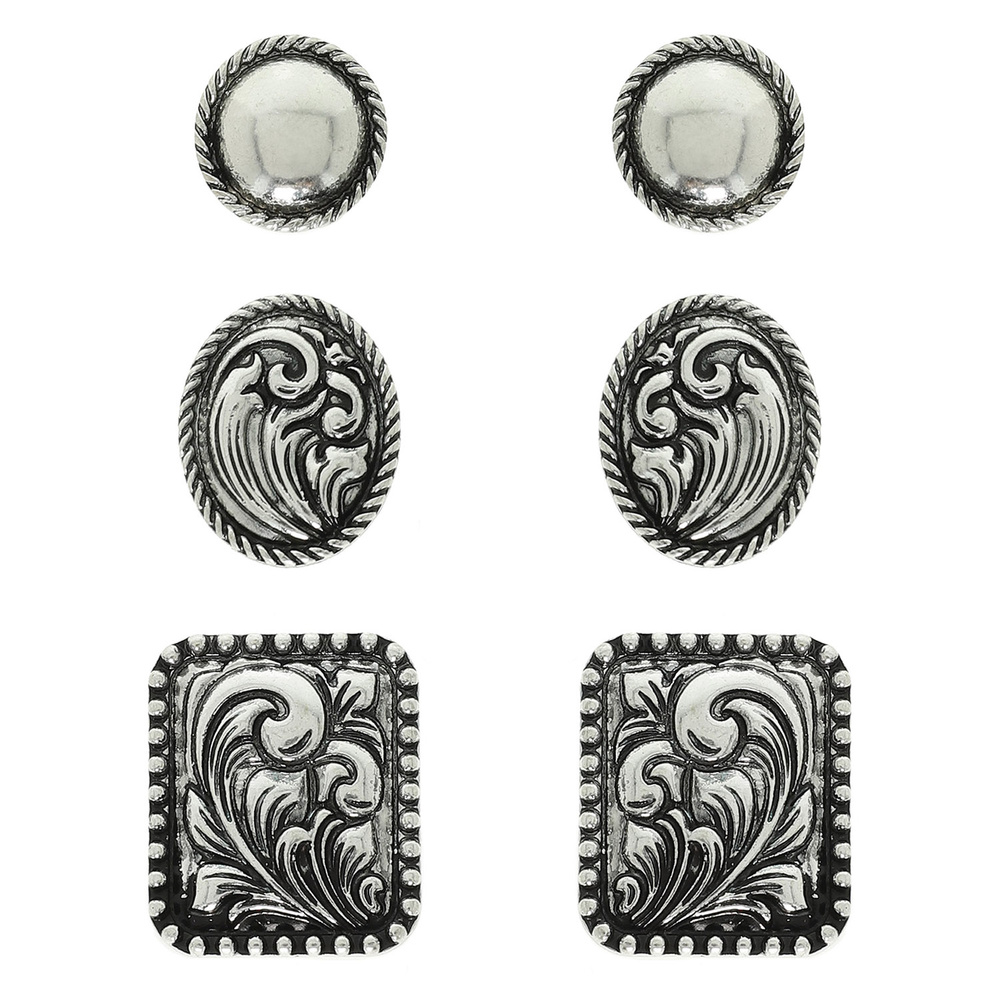 3-pack Western Floral Scrolled Assorted Earrings