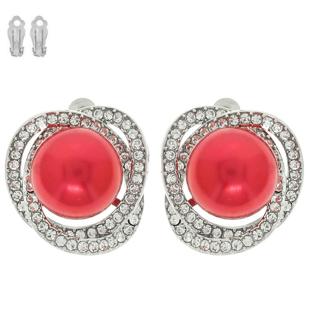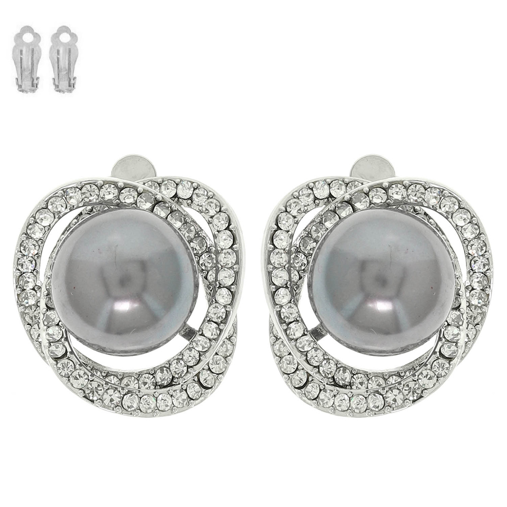 PEARL CENTER WITH RHINESTONE SWIRL HALO CLIP ON EARRINGS