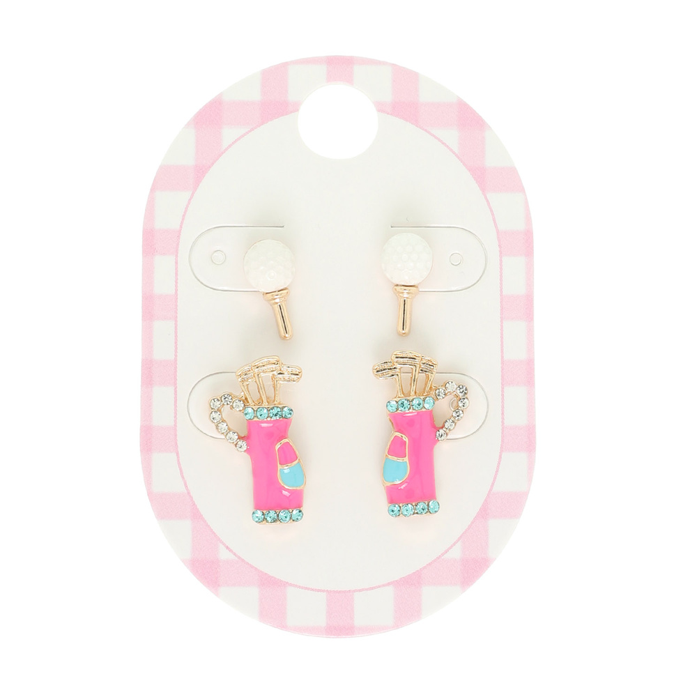 GOLF BAG WITH GOLF BALL TEE STUD EARRING SET WITH RHINESTONE ACCENTS