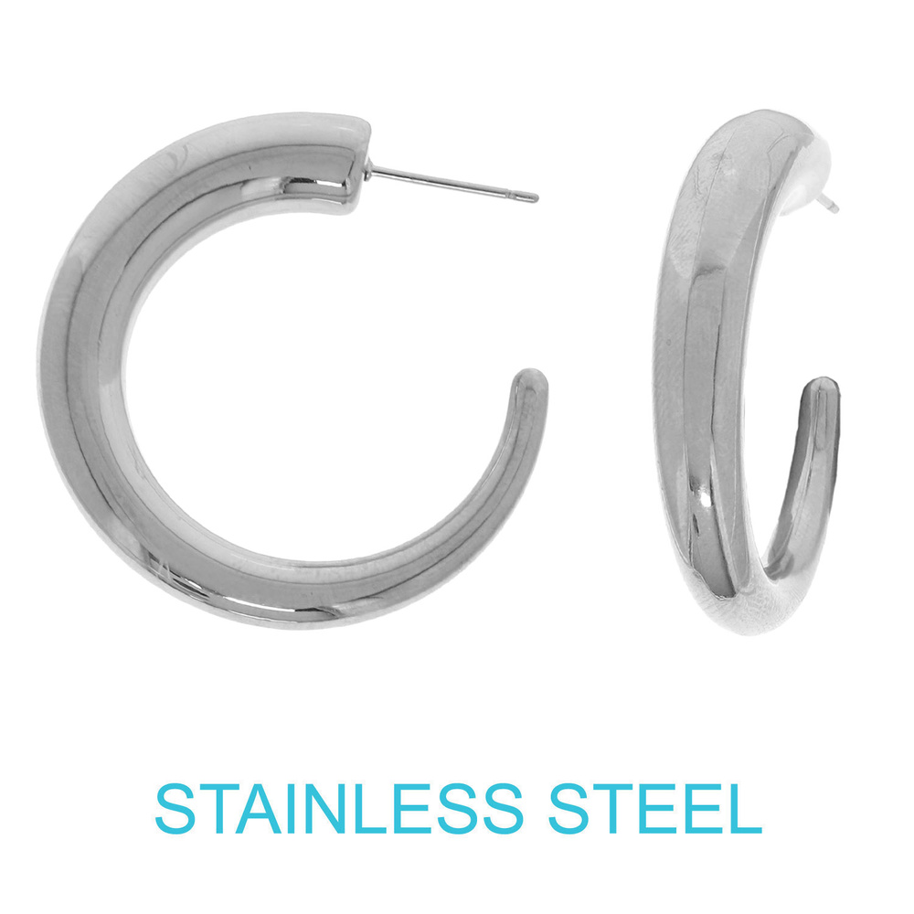 18K GOLD DIPPED OR STAINLESS STEEL C HOOP EARRINGS
