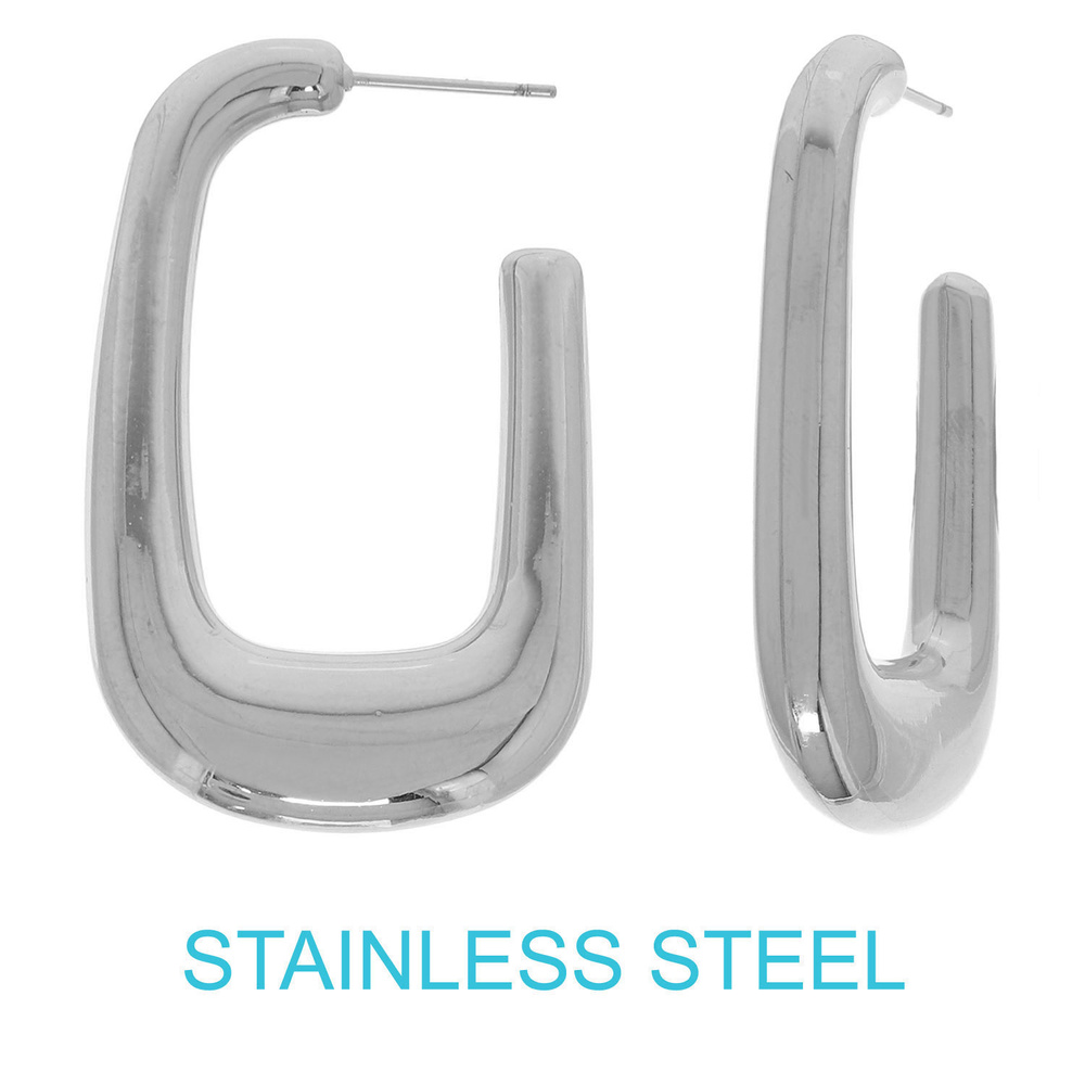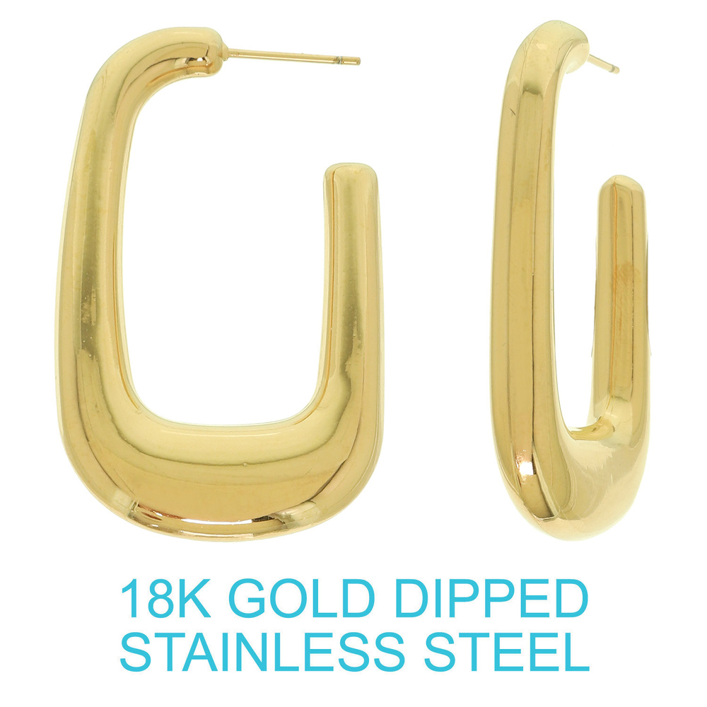 18K GOLD DIPPED OR STAINLESS STEEL RECTANGLE HOOP EARRINGS