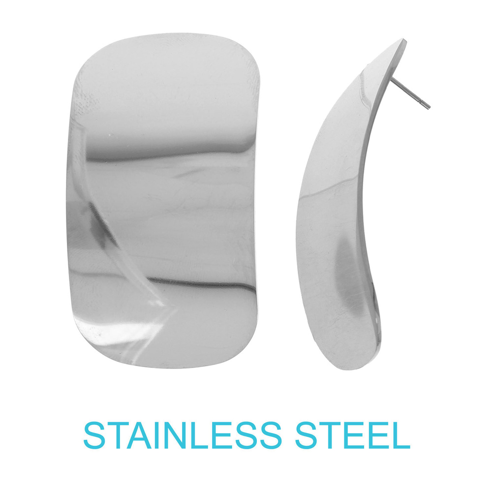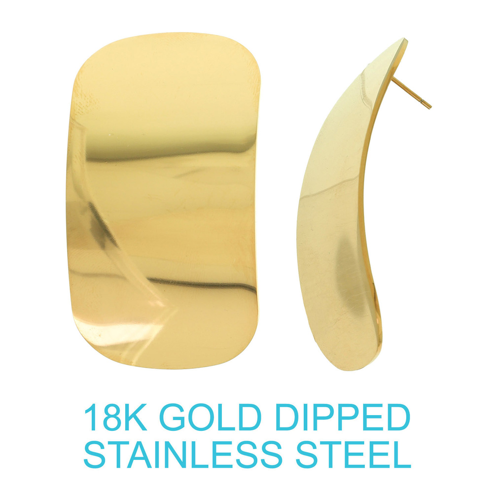 18K GOLD DIPPED STAINLESS STEEL CURVED MIRROR RECTANGLE PLATE POST EARRINGS