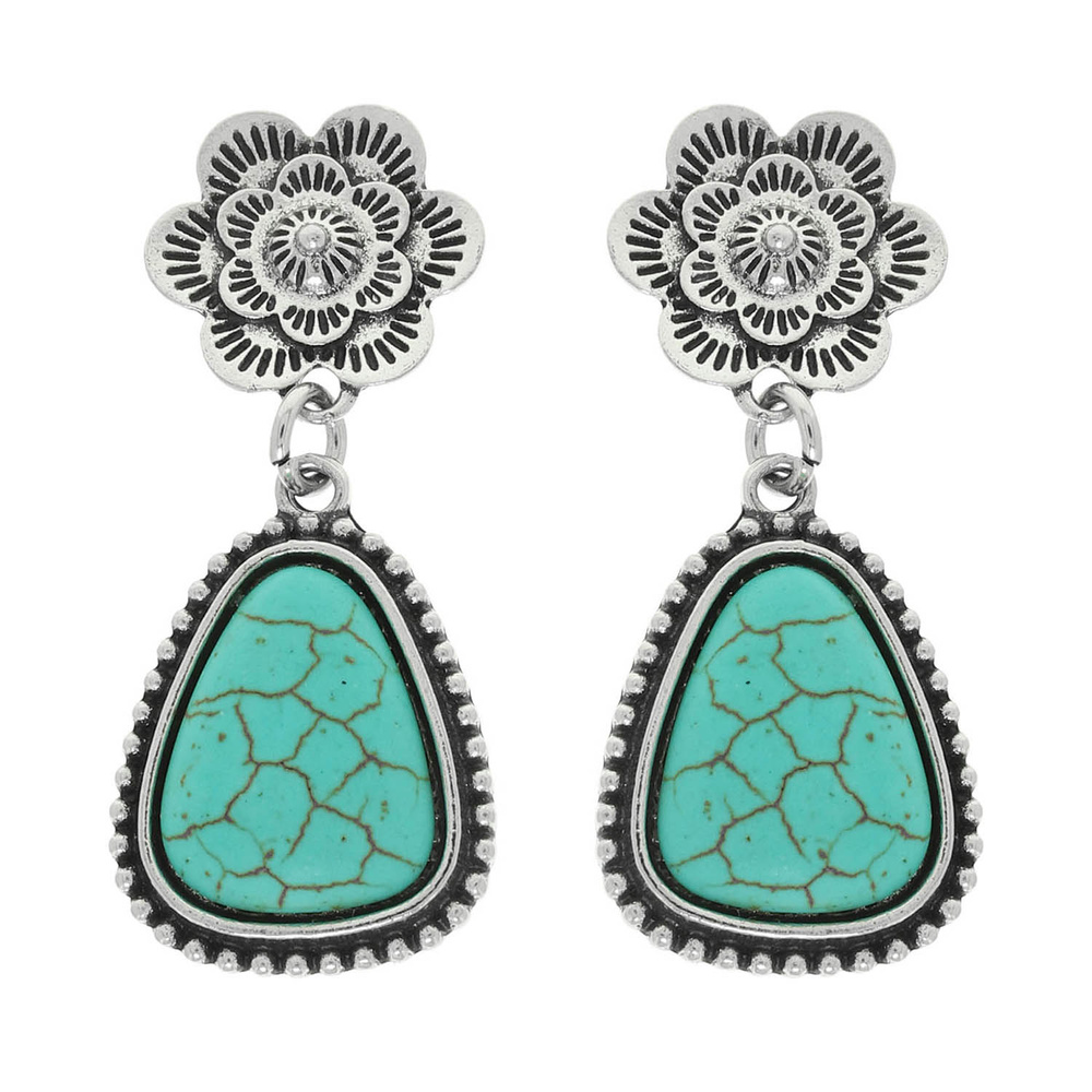 WESTERN FLORAL TURQUOISE TEARDROP POST DANGLE EARRINGS
