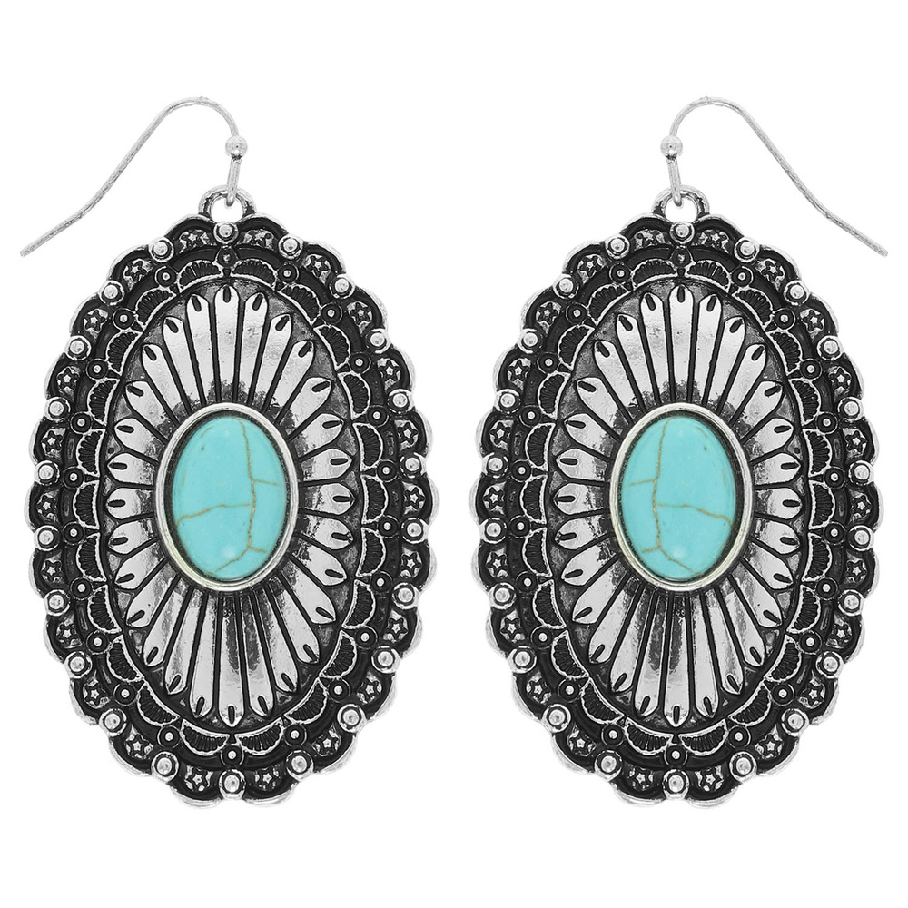 WESTERN OVAL TURQUOISE CONCHO DANGLE EARRINGS