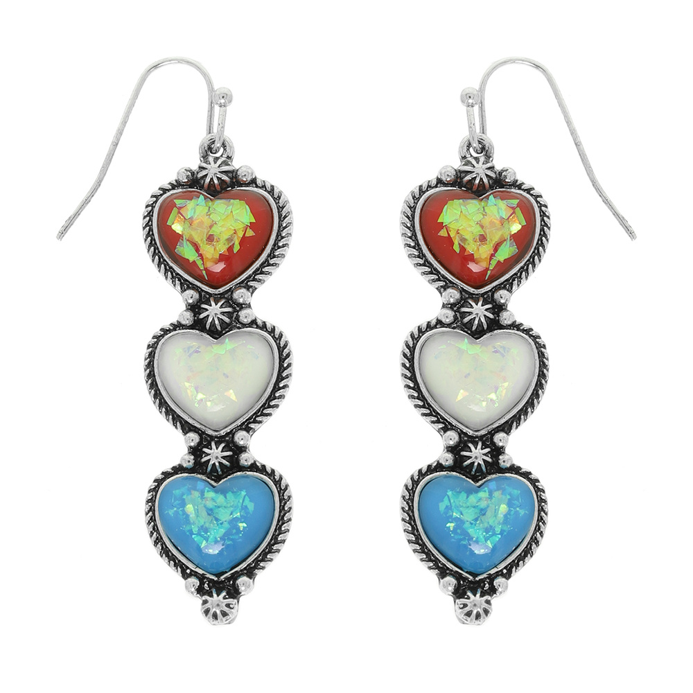 WESTERN PATRIOTIC EPOXY OPAL HEART LINEAR EARRINGS