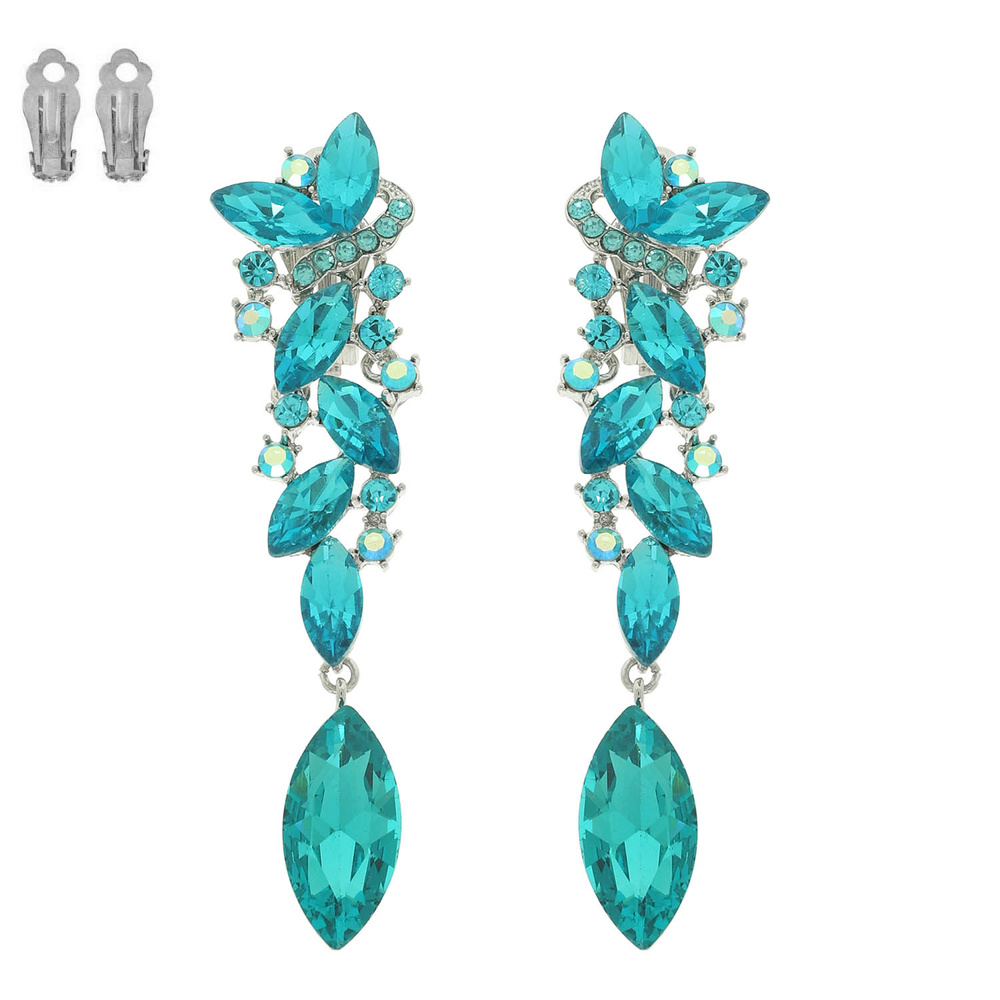 90S AESTHETIC BUTTERFLY PETAL CLUSTER CRYSTAL RHINESTONE CLIP-ON LONG DROP EARRINGS