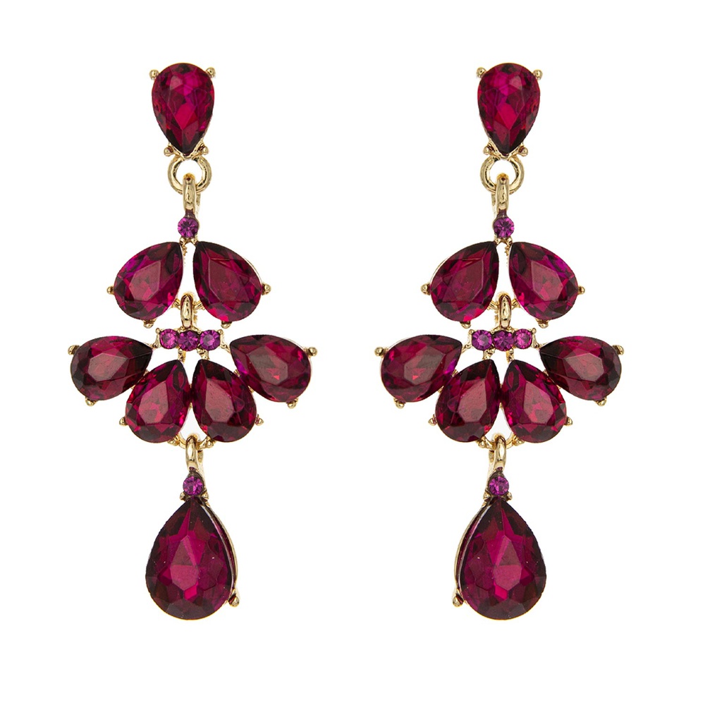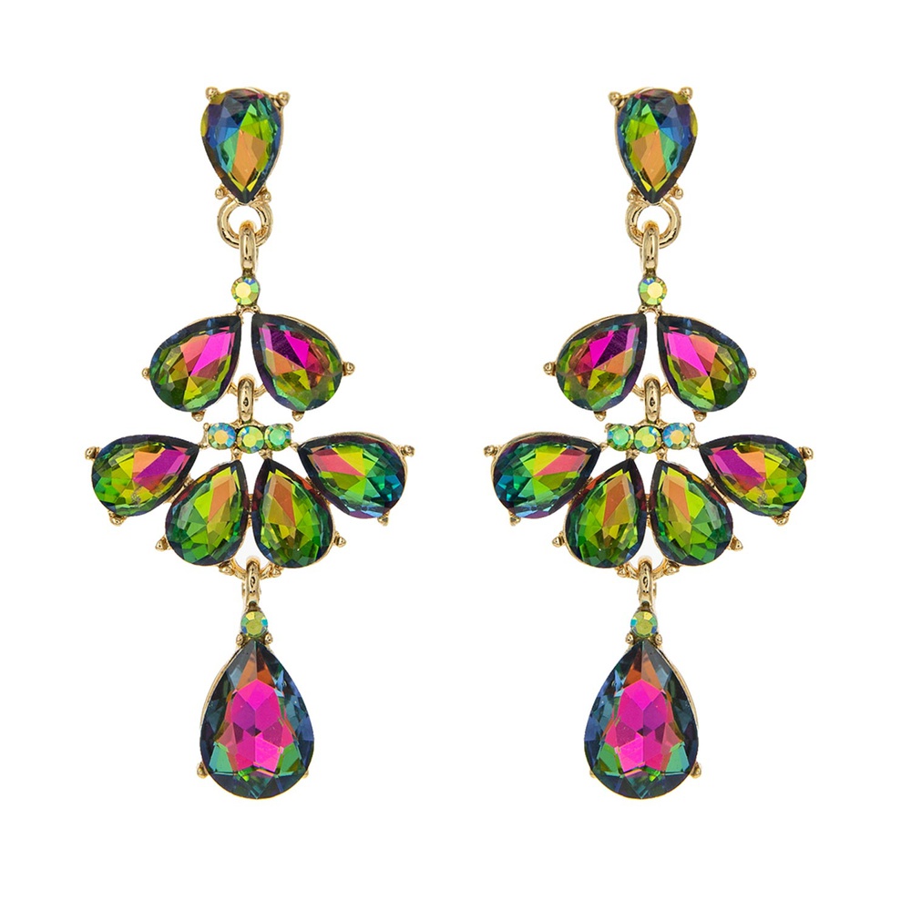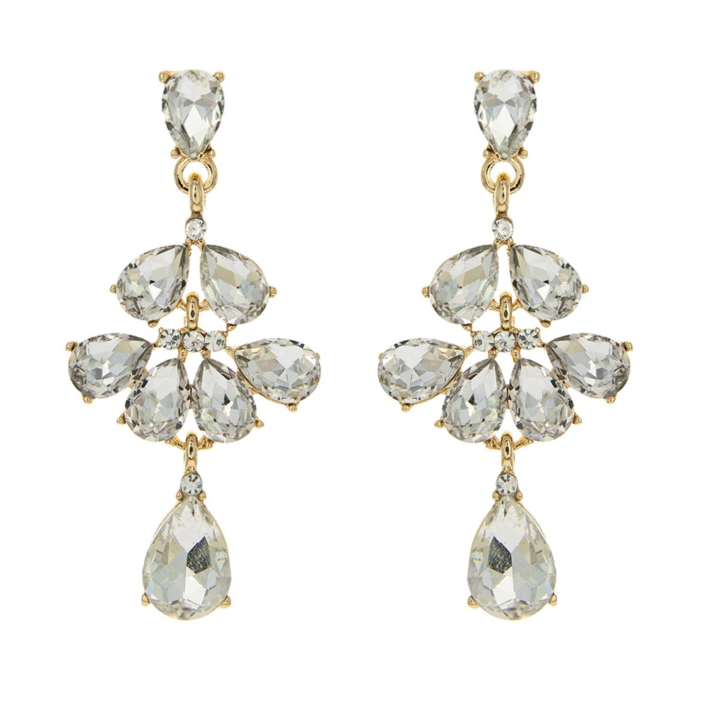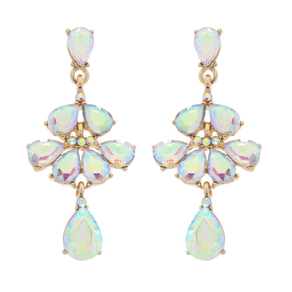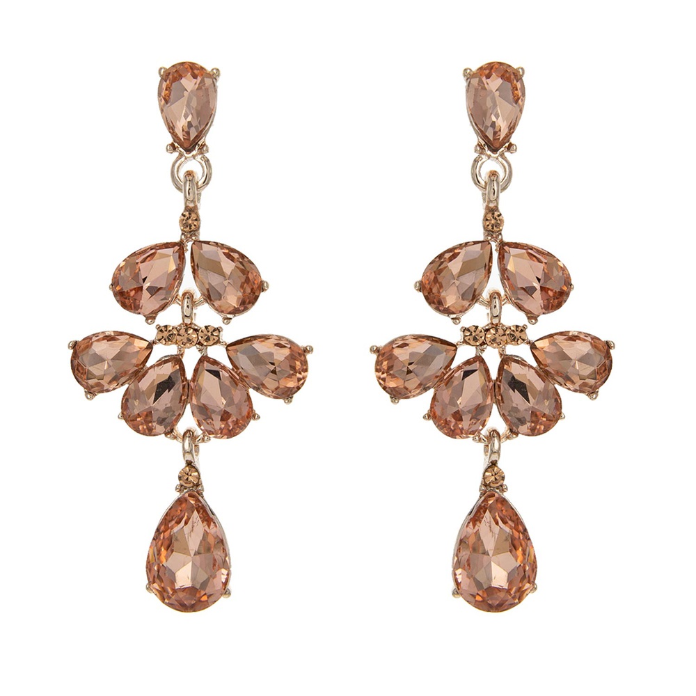 CRYSTAL RHINESTONE TEARDROP CLUSTER LONG DROP EARRINGS