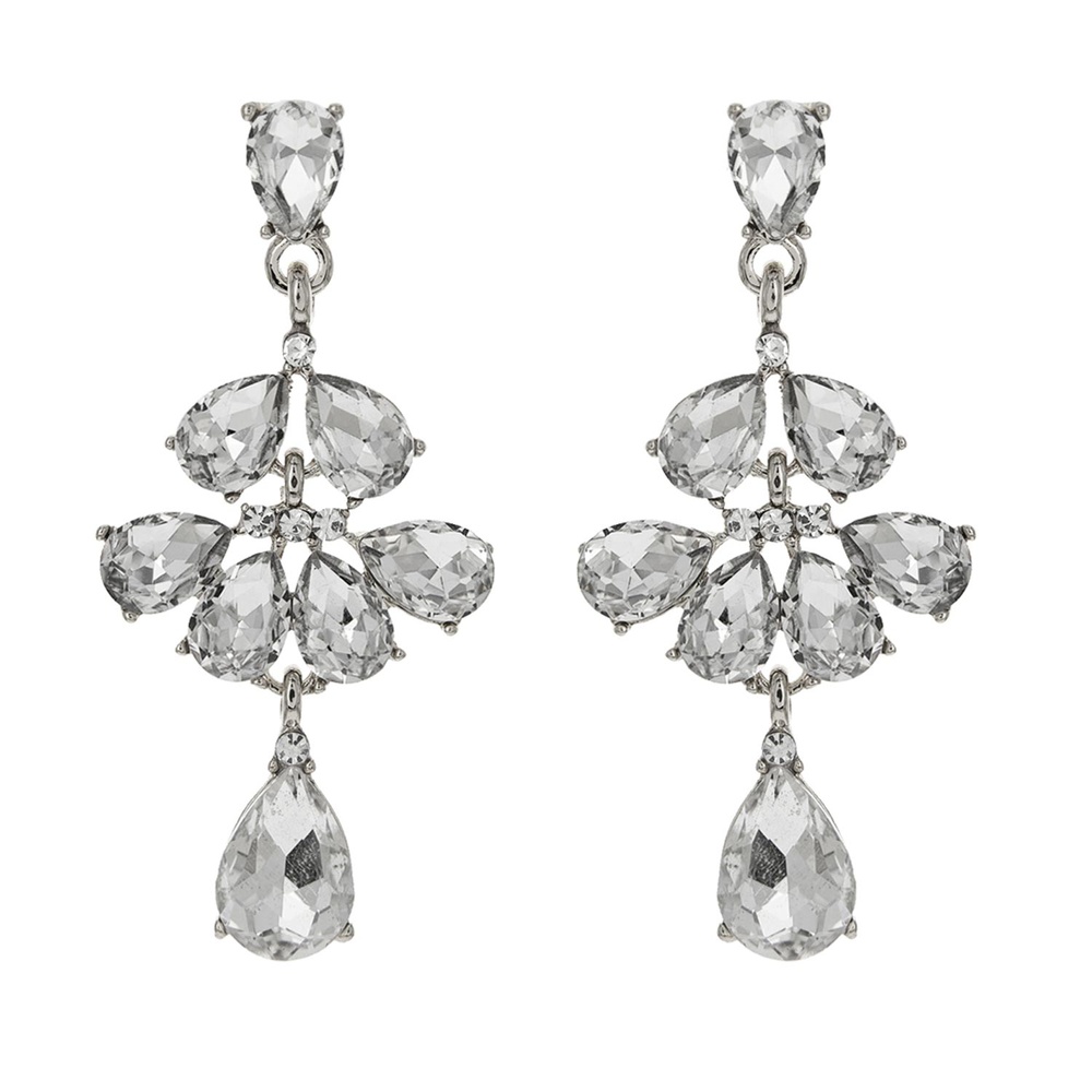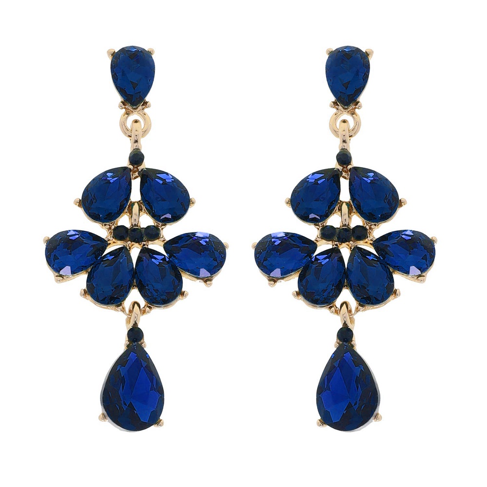 Crystal Rhinestone Teardrop Cluster Long Drop Earrings