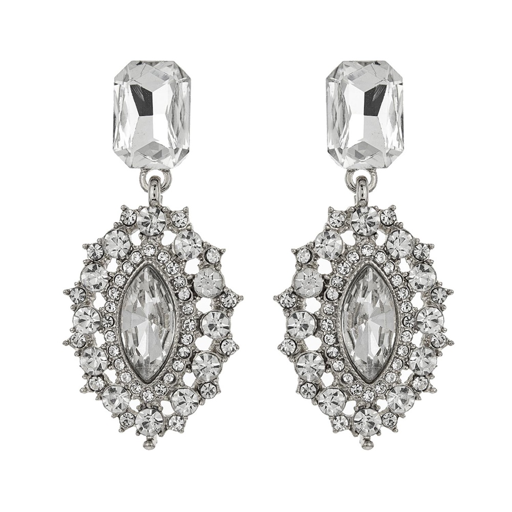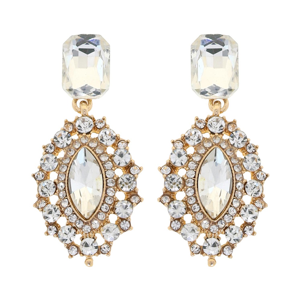 2-tier Crystal Rhinestone Petal Cut Halo Long Drop Earrings