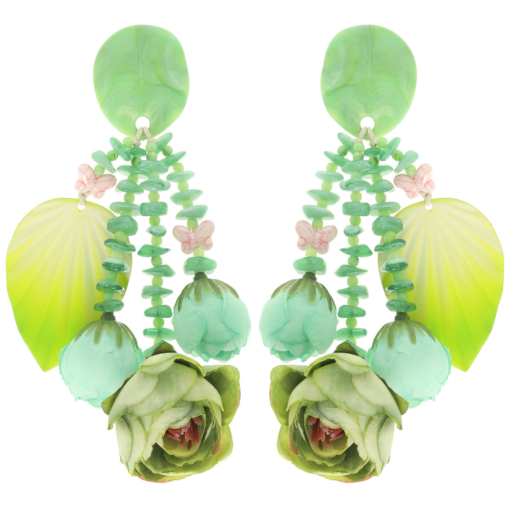 FLOWER EARRINGS FEATURING CASCADING BUTTERFLIES AND TEXTURED LEAVES