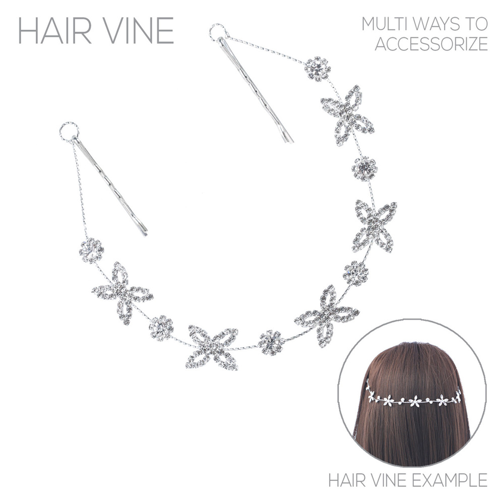 3-PIECE BRIDAL CRYSTAL RHINESTONE BUTTERFLY STYLE MULTIUSE LIGHTWEIGHT HEADPIECE SET WITH HAIR PINS IN SILVER TONE METAL