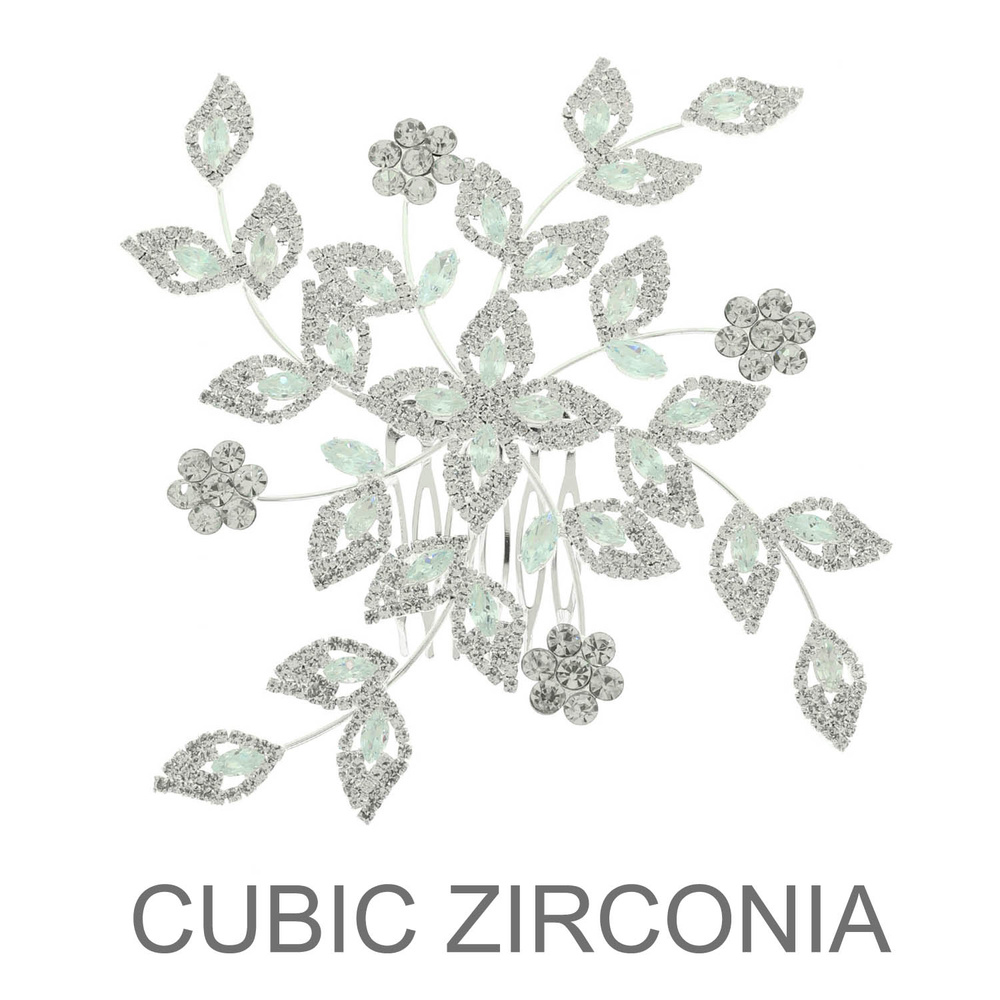 BRANCHING FLOWER AND LEAF CUBIC ZIRCONIA HAIR COMB