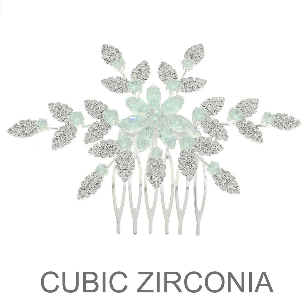 MARQUISE FLOWER AND PAVE SPRAY CUBIC ZIRCONIA HAIR COMB