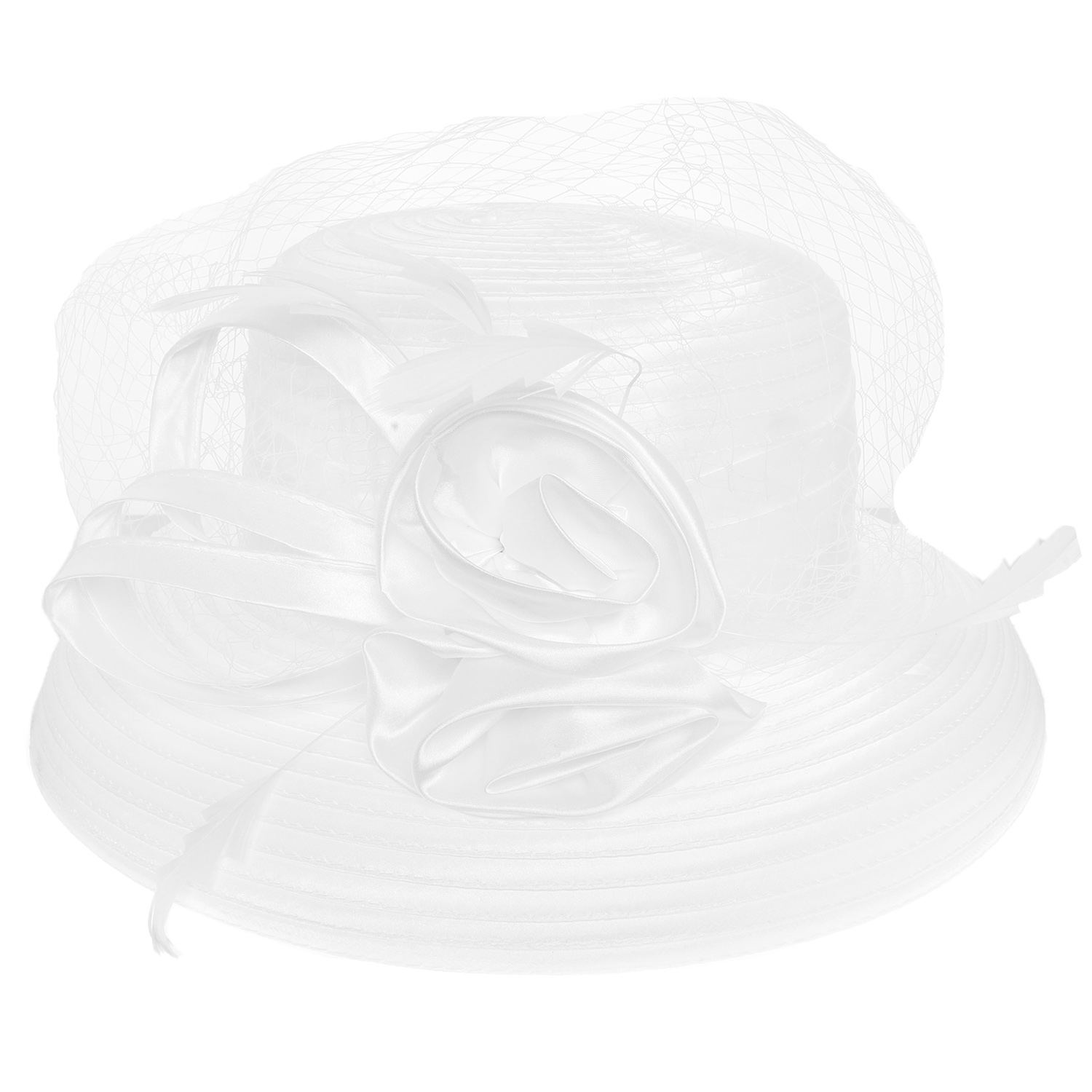WIDE BRIM FEATHER ROSE VEIL NET PAPER BRAID HAT