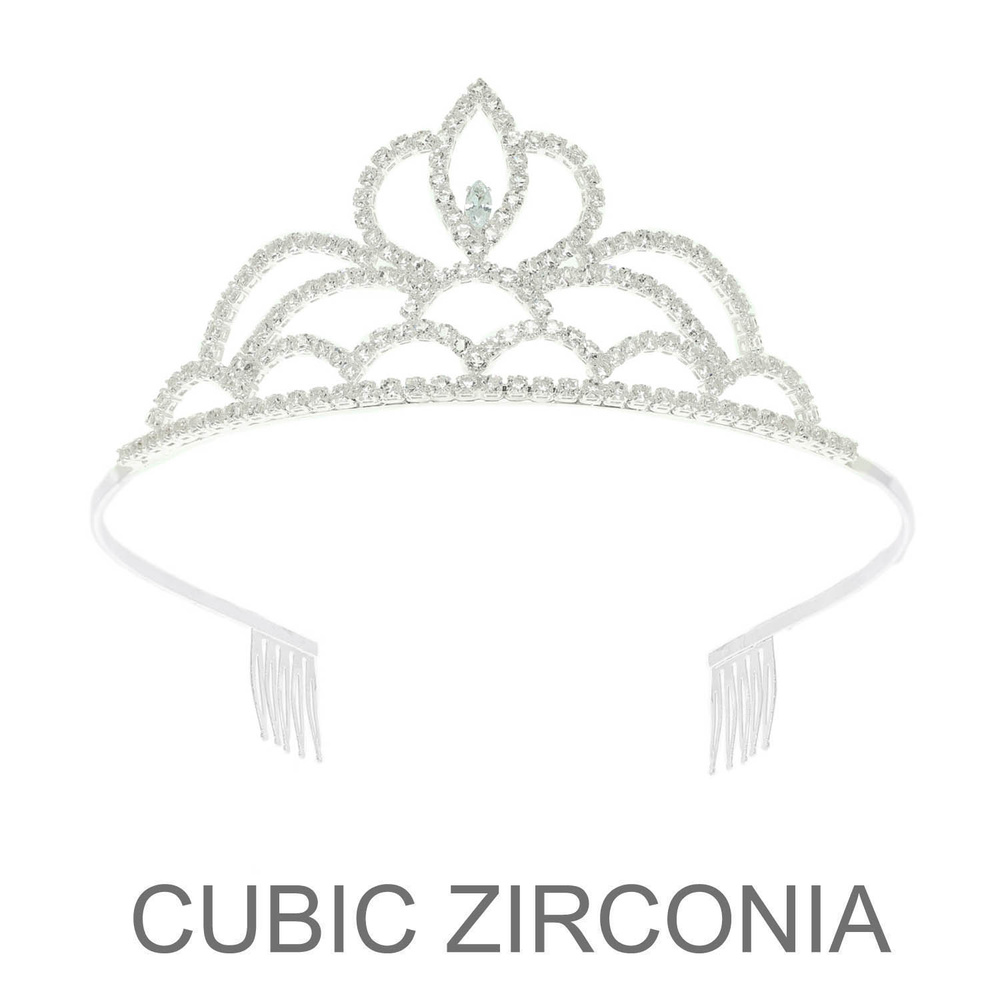 LAYERED LOTUS CUBIC ZIRCONIA CROWN TIARA WITH COMB TIPS