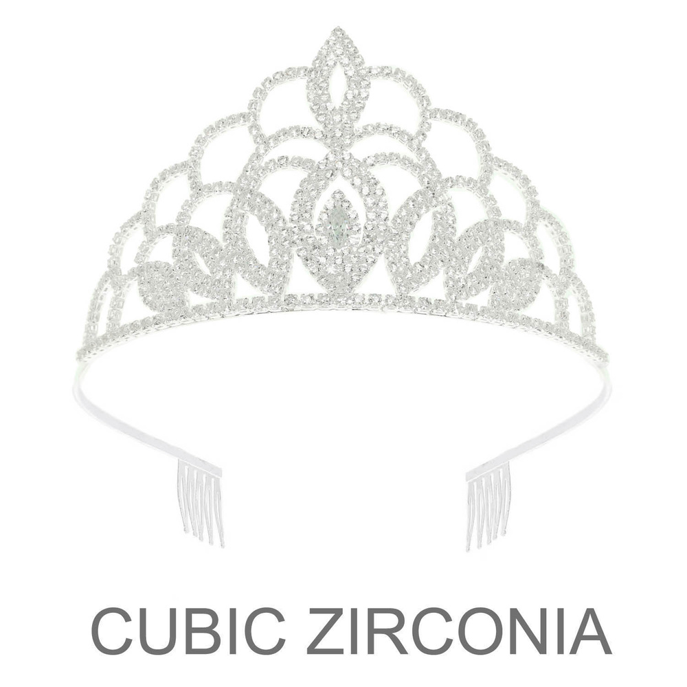 CUBIC ZIRCONIA OVAL PETAL CROWN TIARA WITH COMB TIPS