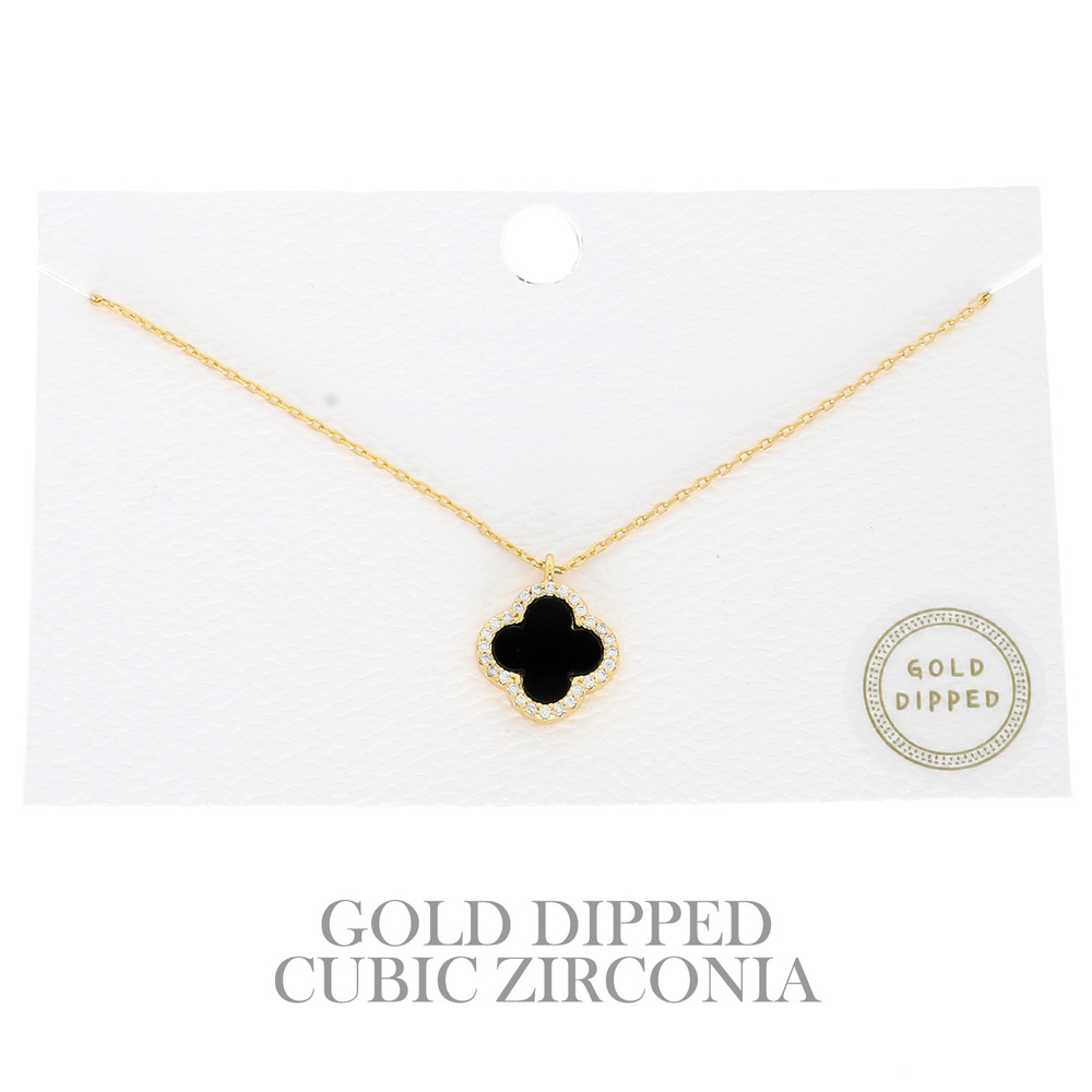 ADJUSTABLE GOLD-DIPPED RHINESTONE PAVE ENAMEL FOUR LEAF CLOVER PENDANT NECKLACE