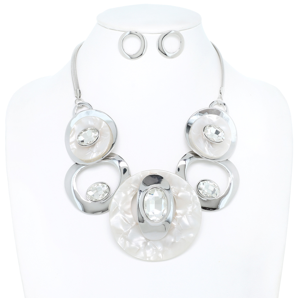 BOHO STYLE ACETATE AND CRYSTAL RHINESTONE CIRCULAR ADJUSTABLE BIB NECKLACE EARRING SET