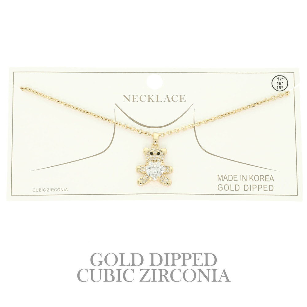 Gold Plated Teddy Bear Cz Pendant Necklace