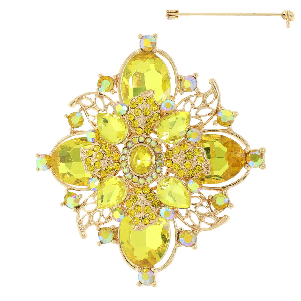 Crystal Flower Brooch Pin
