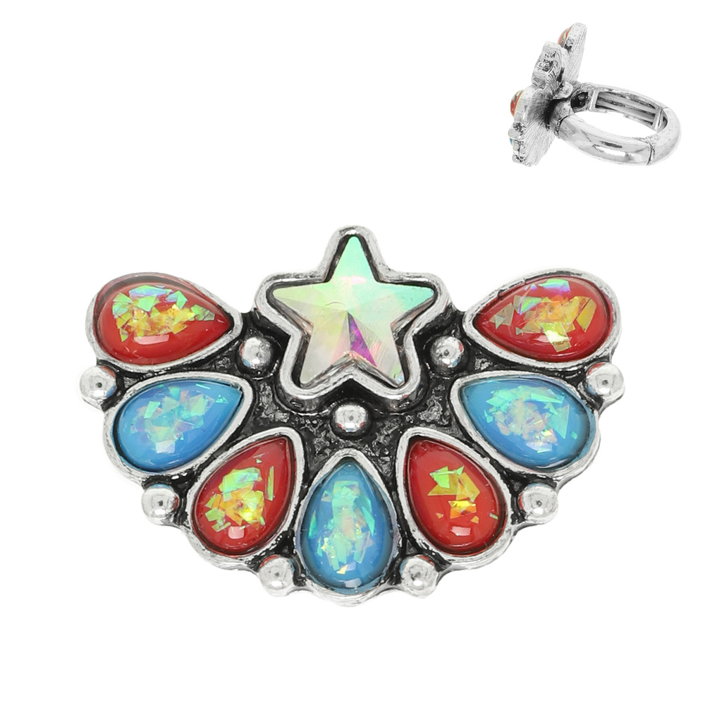 WESTERN PATRIOTIC EPOXY OPAL CLUSTER HALF CONCHO RING WITH STAR CENTER STRETCH BAND