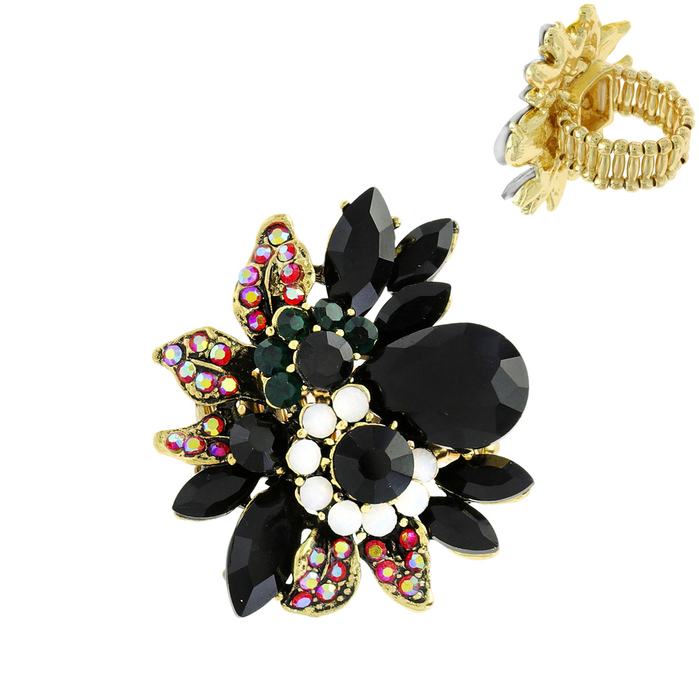 FLORAL MULTI-CUT CRYSTAL CLUSTER STRETCH RING IN GOLD-TONE METAL