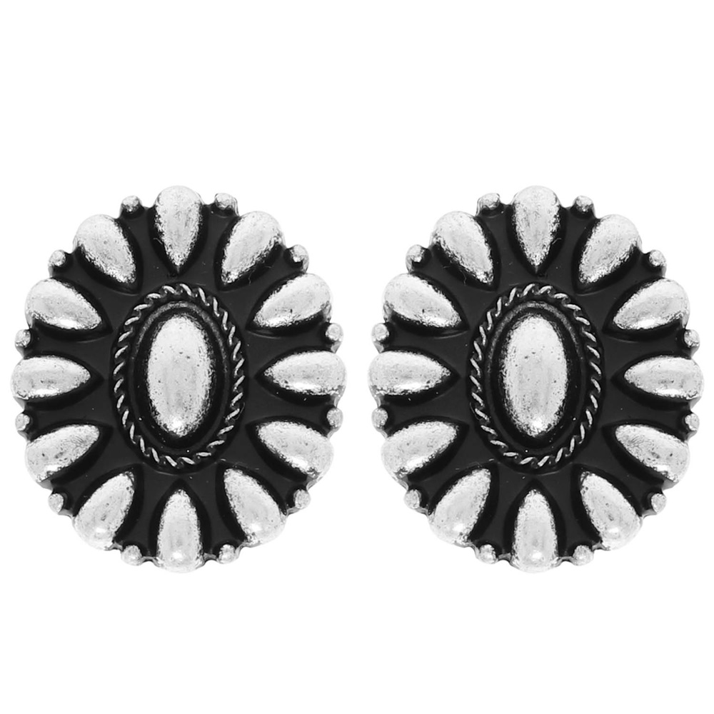 BUBBLE PATTERN OVAL CONCHO POST EARRINGS IN OXIDIZED SILVER TONE METAL