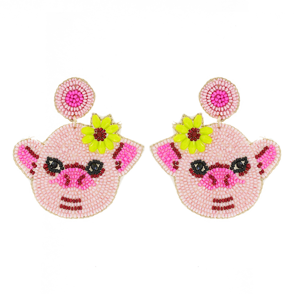 Sunflower Pig Seed Bead Handmade Beaded Dangle And Drop Earrings