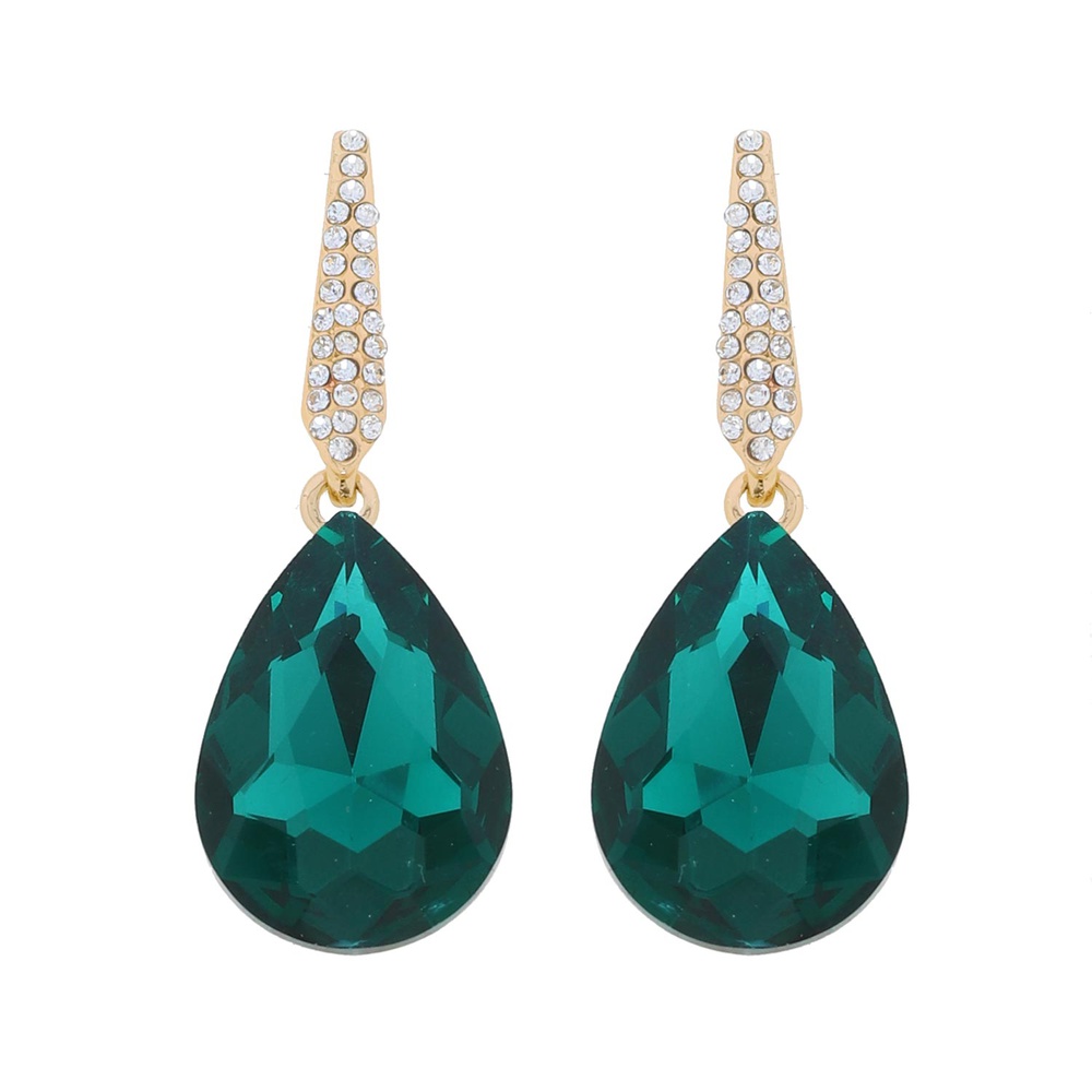 ART DECO VINTAGE TEARDROP CRYSTAL RHINESTONE DANGLE AND DROP EARRINGS IN GOLD TONE METAL