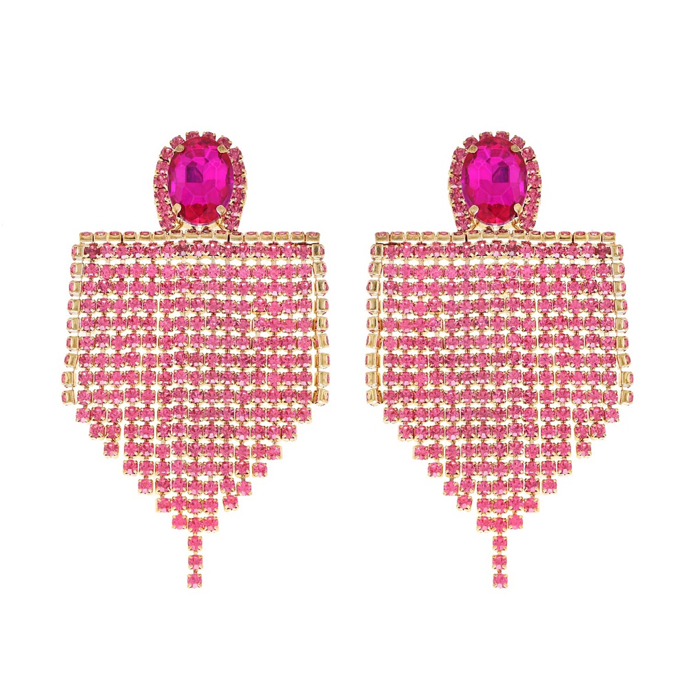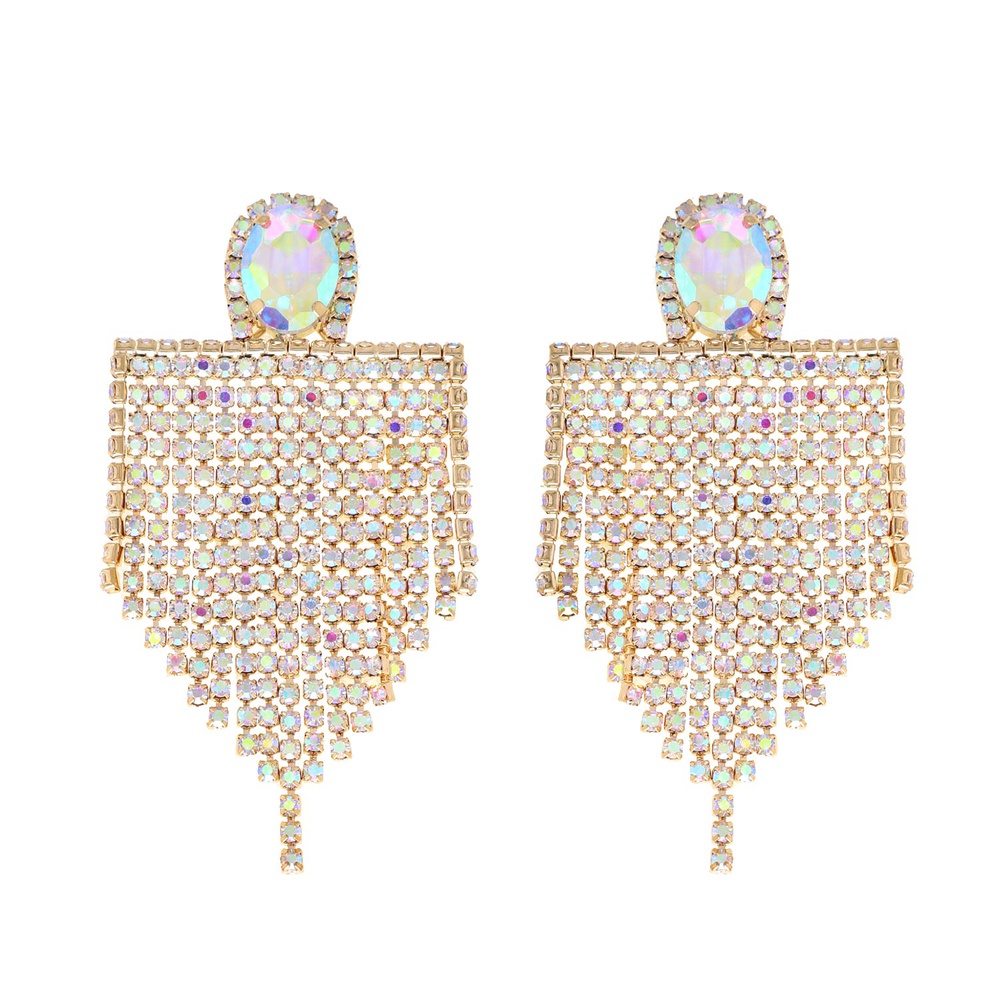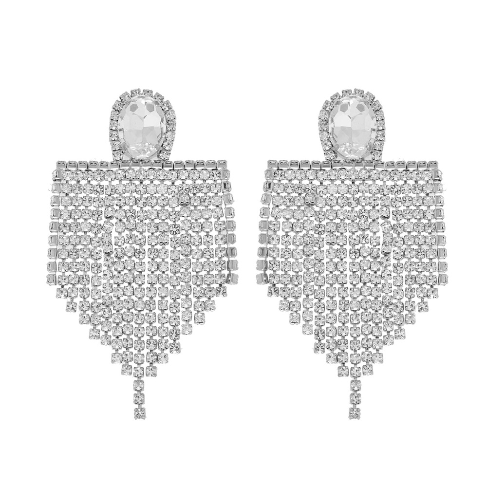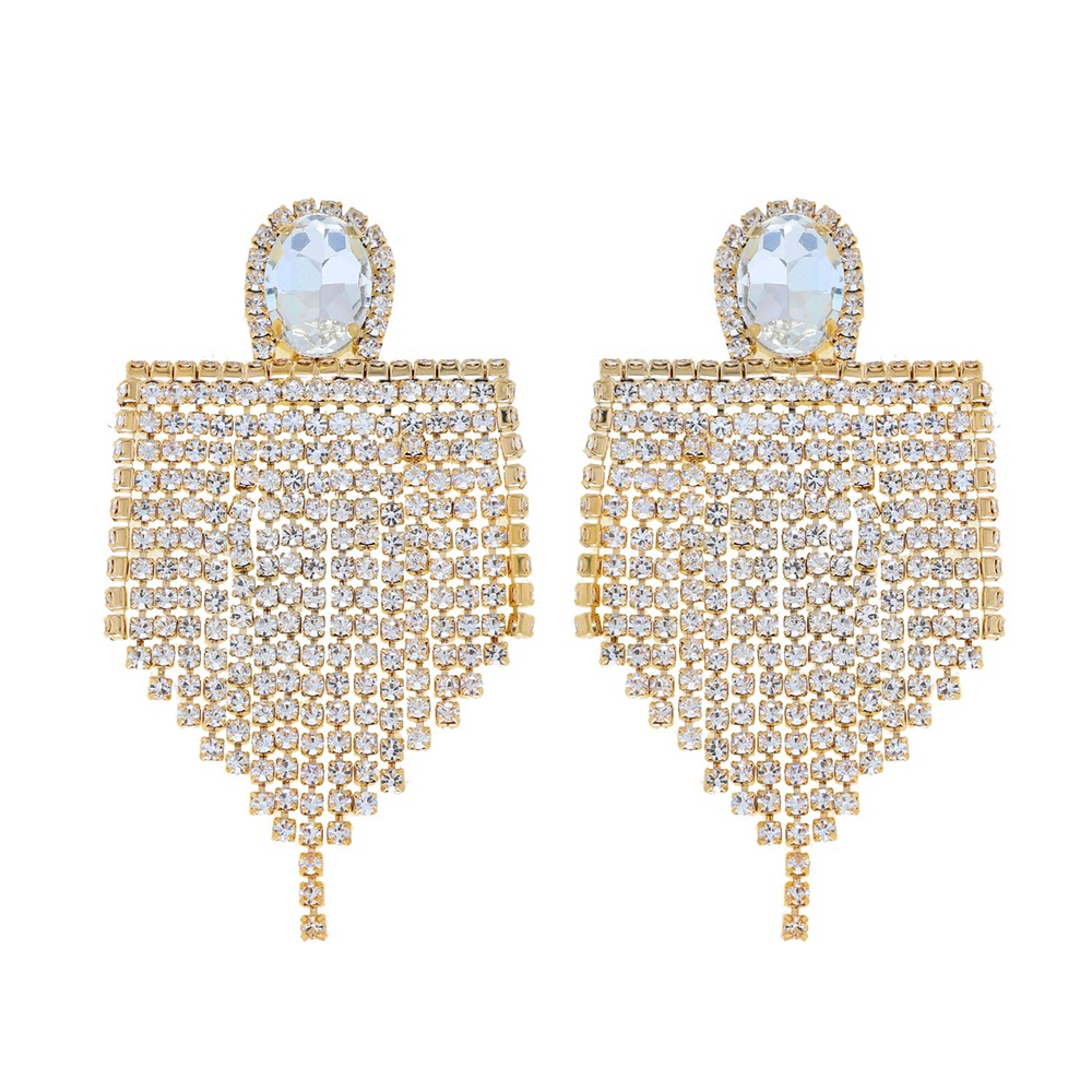 CRYSTAL RHINESTONE TRIANGLE TASSEL LONG DROP EARRINGS