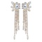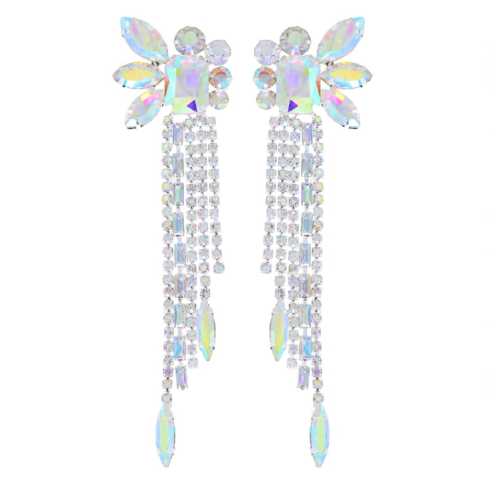 CRYSTAL RHINESTONE TASSEL LONG DROP CLUSTER EARRING