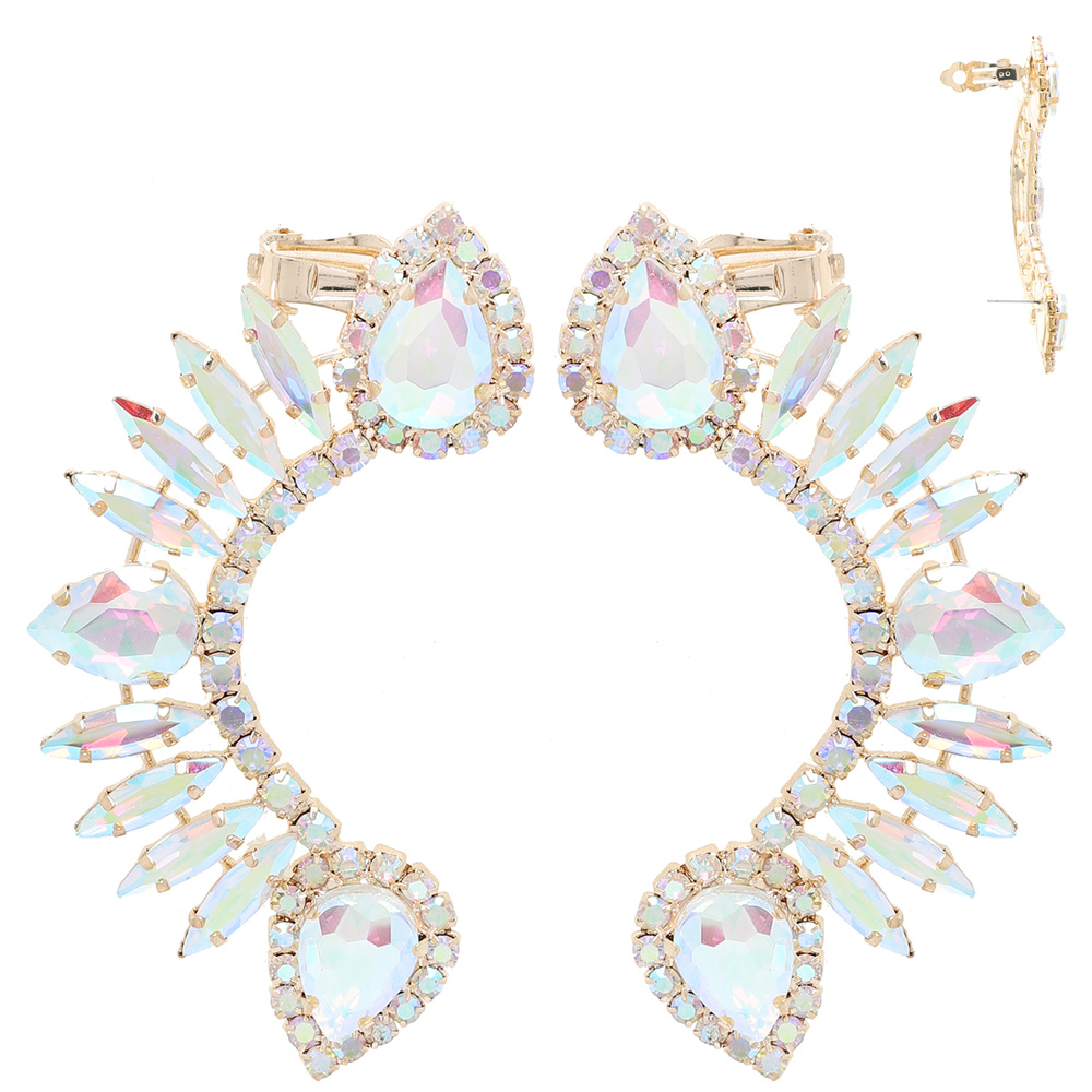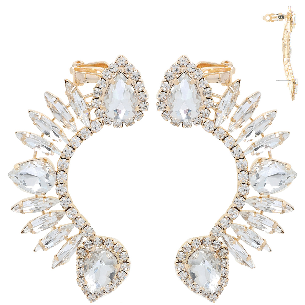 CRYSTAL RHINESTONE PETAL CLUSTER EAR CLIMBER DUAL CLIP-ON EARRING