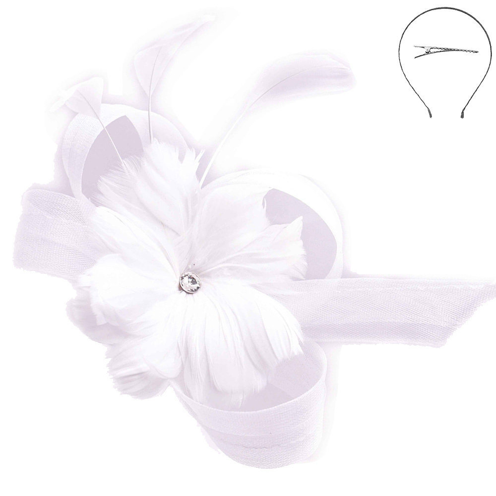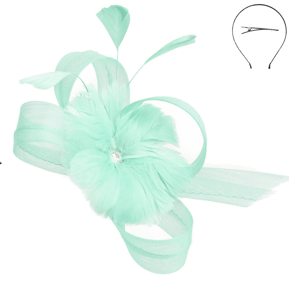 FLORAL FEATHERED GEMSTONE JEWELED SHEER MESH FASCINATOR