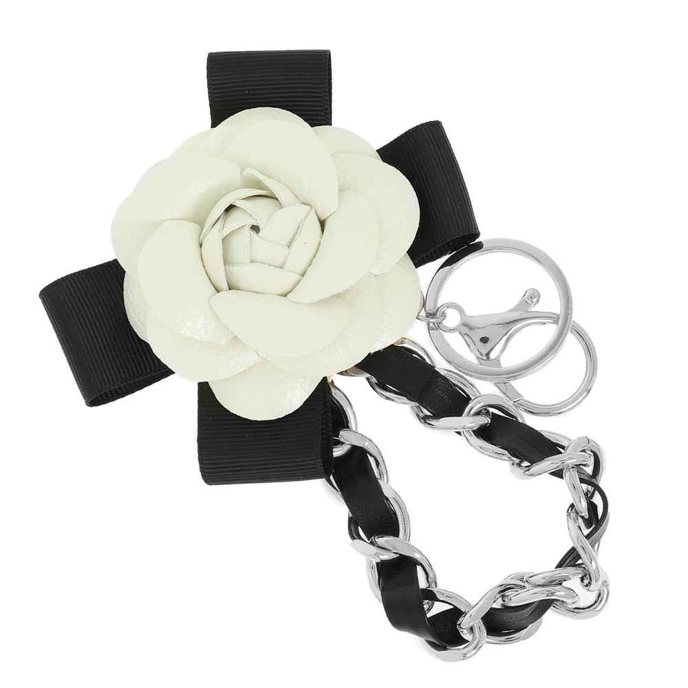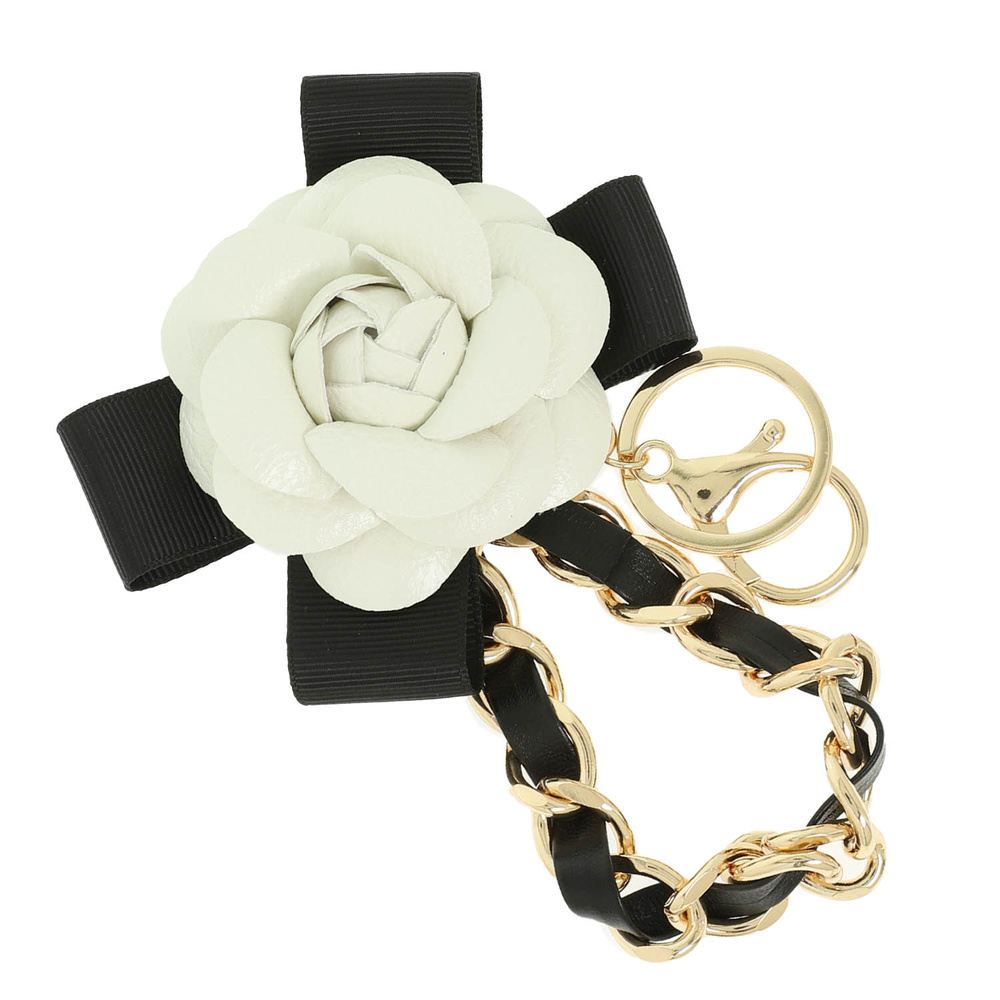 FLORAL THEME BAG CHARM KEYCHAIN WITH FLOWER RIBBON CHAIN WRISTLET