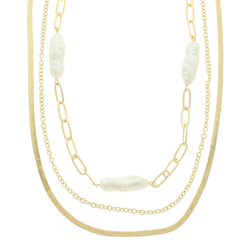 MULTI STRAND BAROQUE PEARL NECKLACE IN GOLD TONE METAL