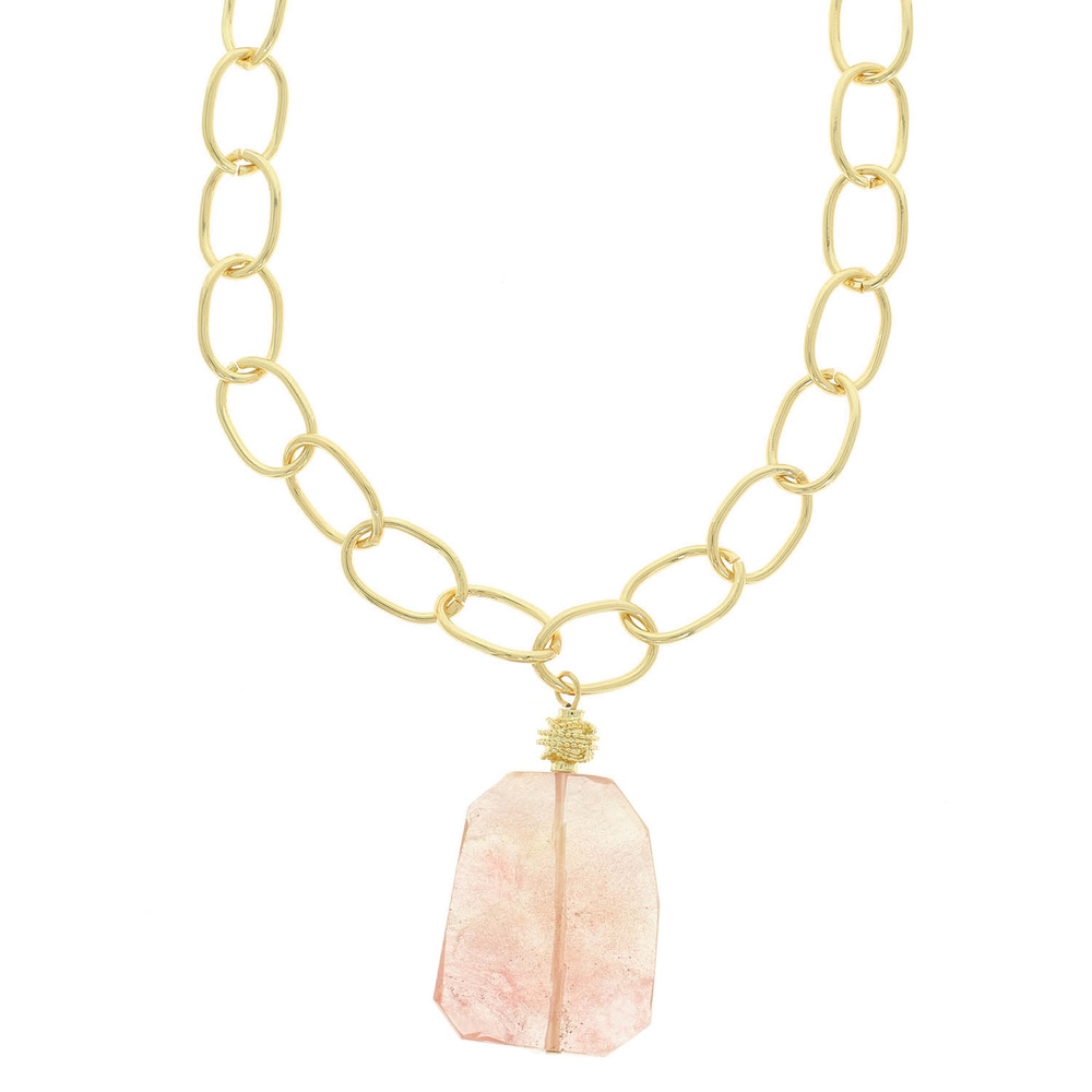 STYLED COLOR STONE AMULET PENDANT NECKLACE IN GOLD TONE METAL