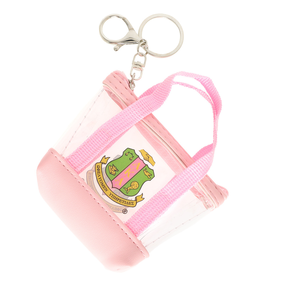 ALPHA KAPPA ALPHA THEMED FUNCTIONAL CLEAR VINYL MINI TOTE BAG KEYCHAIN