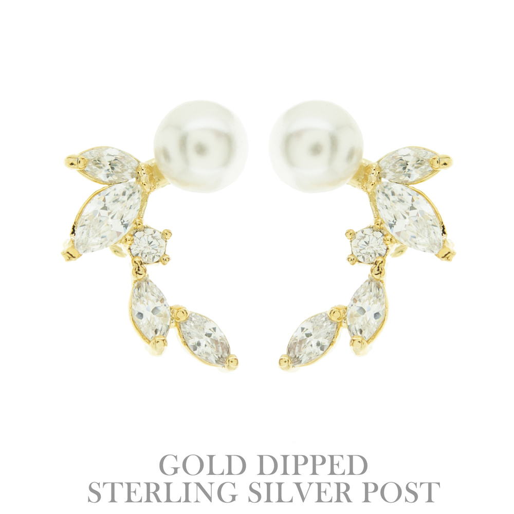 .925 Sterling Silver Post Cubic Zirconia White Gold Dipped Stud Earrings
