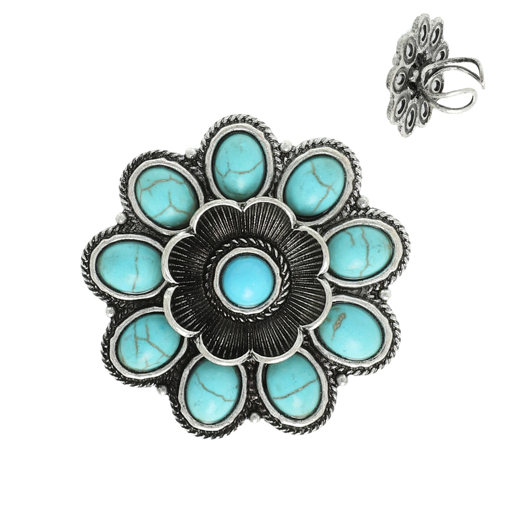 Western Floral Turquoise Ab Gemstone Cuff Ringc