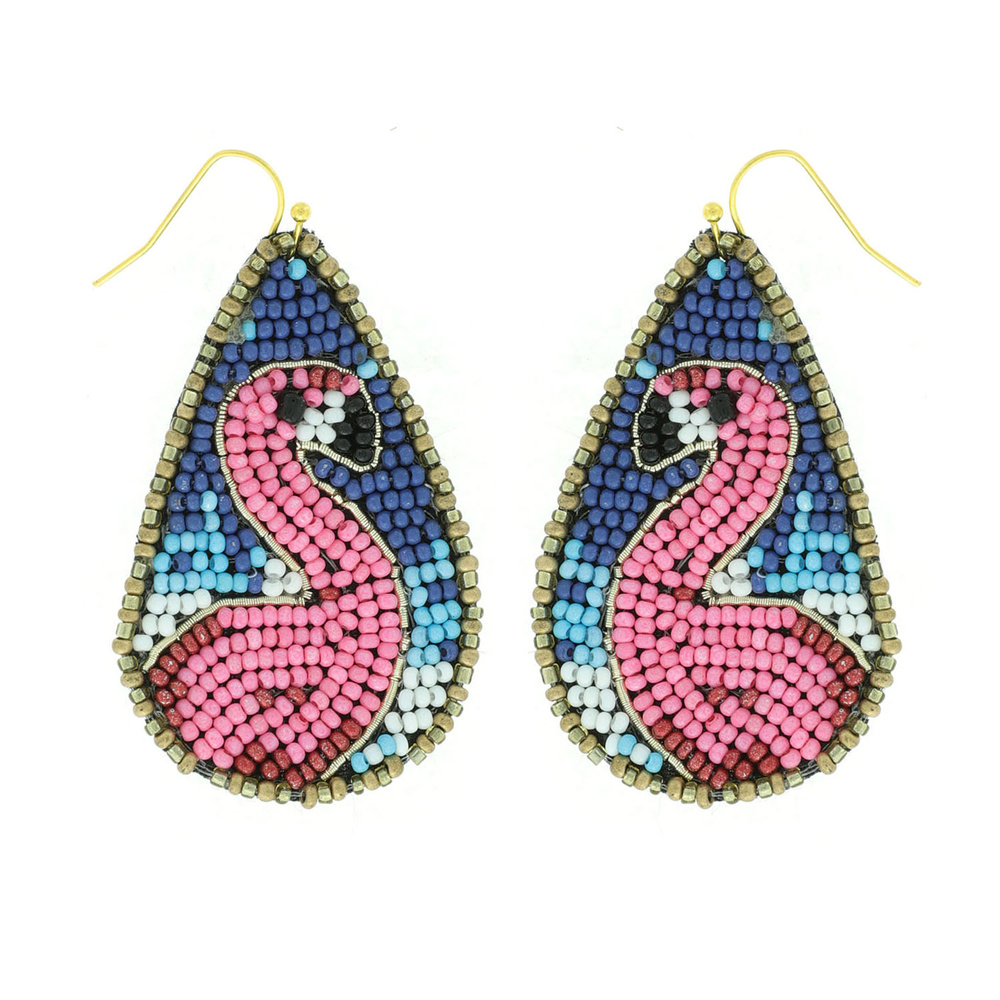 SEED BEAD FLAMINGO TEARDROP DANGLE EARRINGS