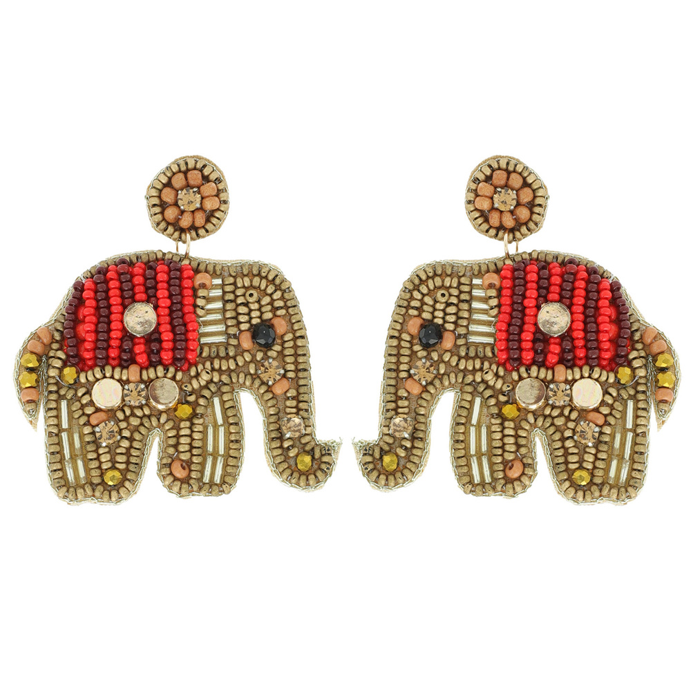 ELEPHANT SEED BEAD DANGLE EARRINGS