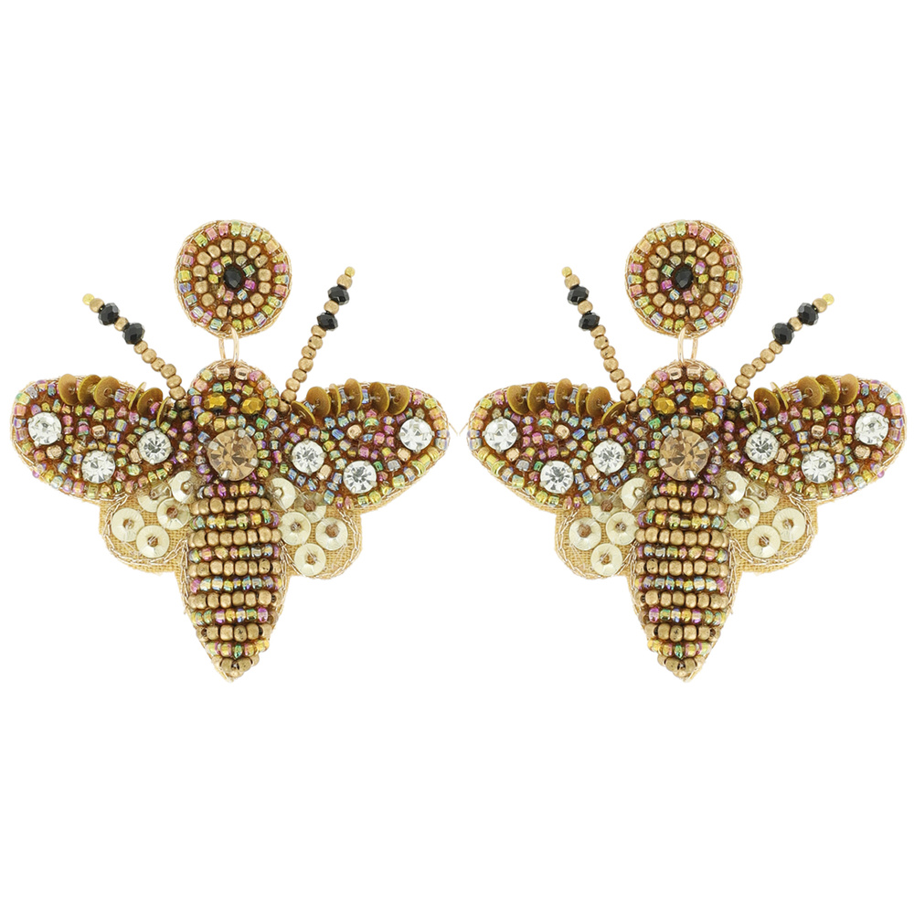 FASHION GOLD BEE SEED BEAD DANGLE EARRINGS